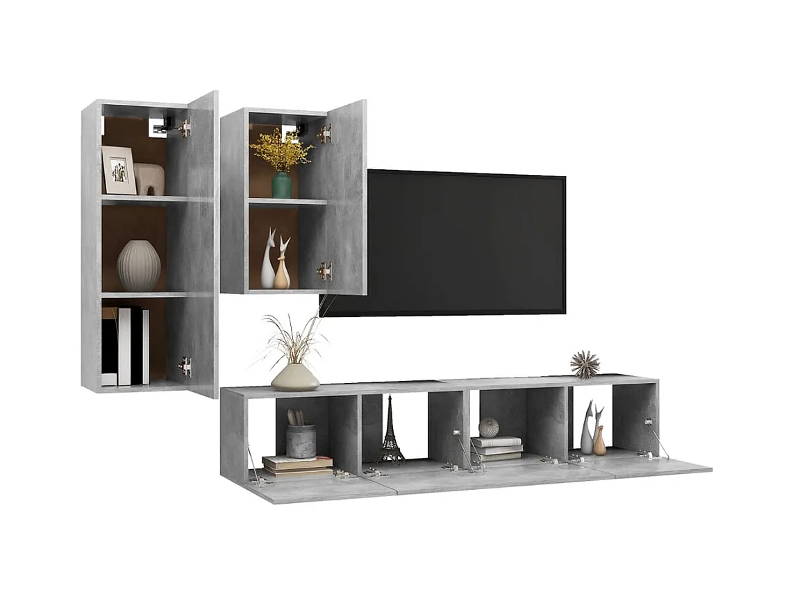 Conjunto de soporte para TV de 4 piezas de madera de ingeniería gris hormigón
