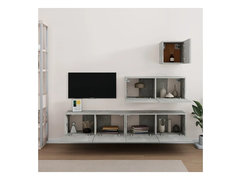 Conjunto de soporte para TV de 4 piezas de madera de ingeniería gris hormigón