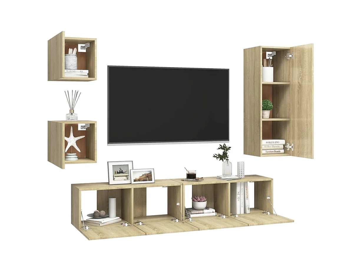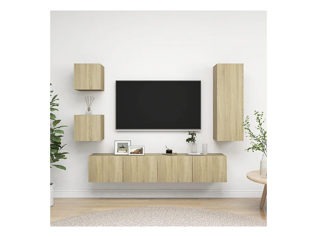 Conjunto de soporte para TV de 5 piezas de madera de ingeniería de roble Sonoma