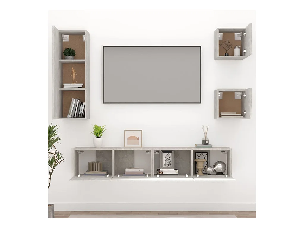 Conjunto de soporte para TV de 4 piezas de madera de ingeniería gris hormigón