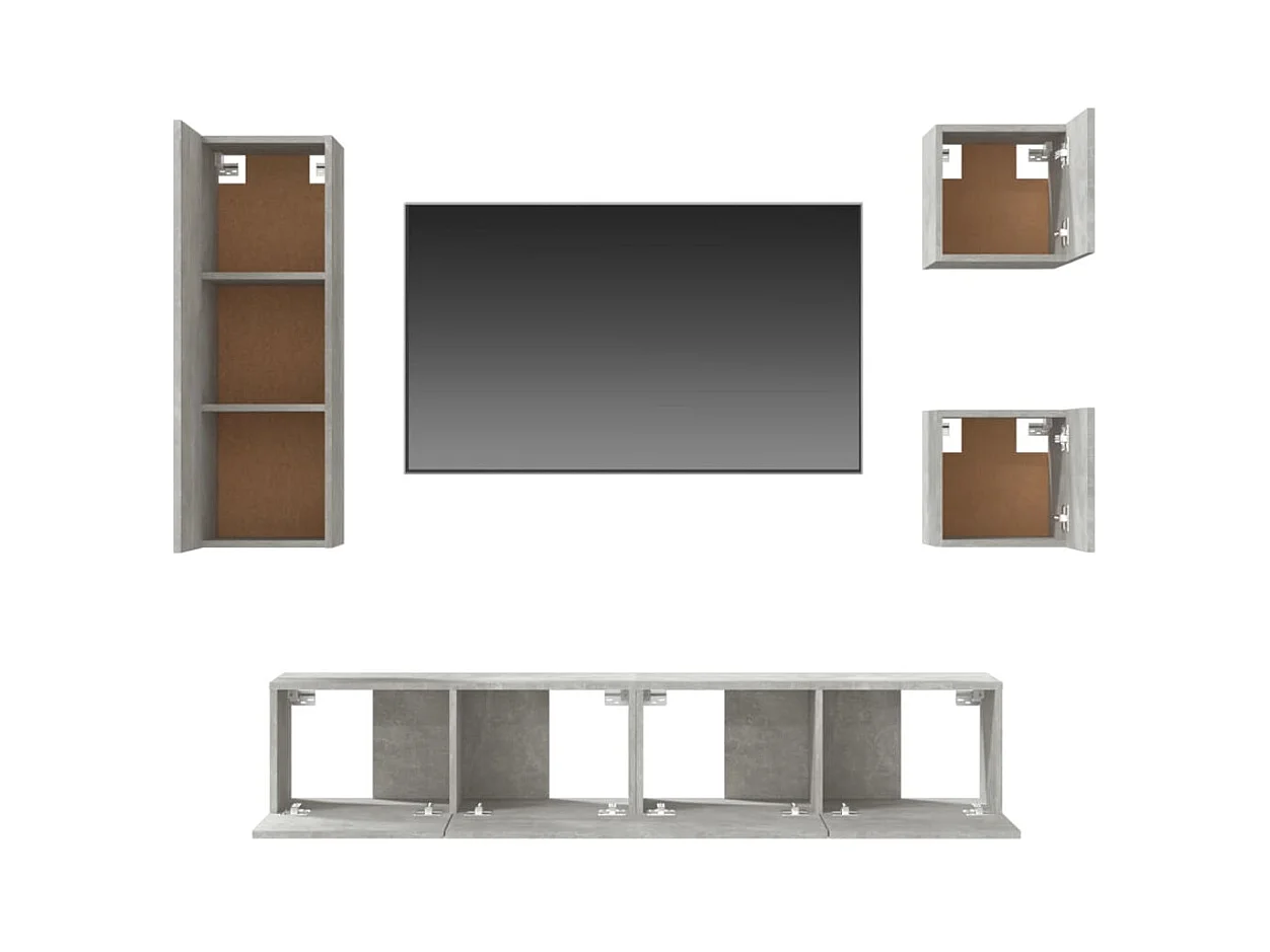 Conjunto de soporte para TV de 5 piezas de madera de ingeniería gris hormigón