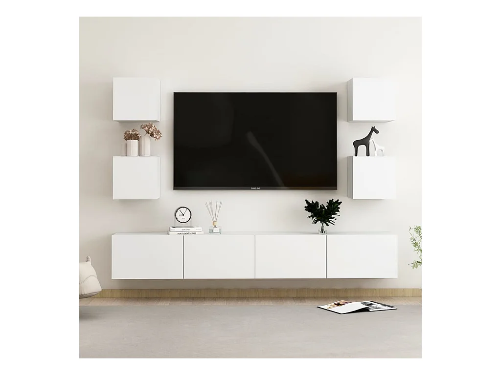 Conjunto de soporte para TV de 8 piezas, blanco, madera de ingeniería