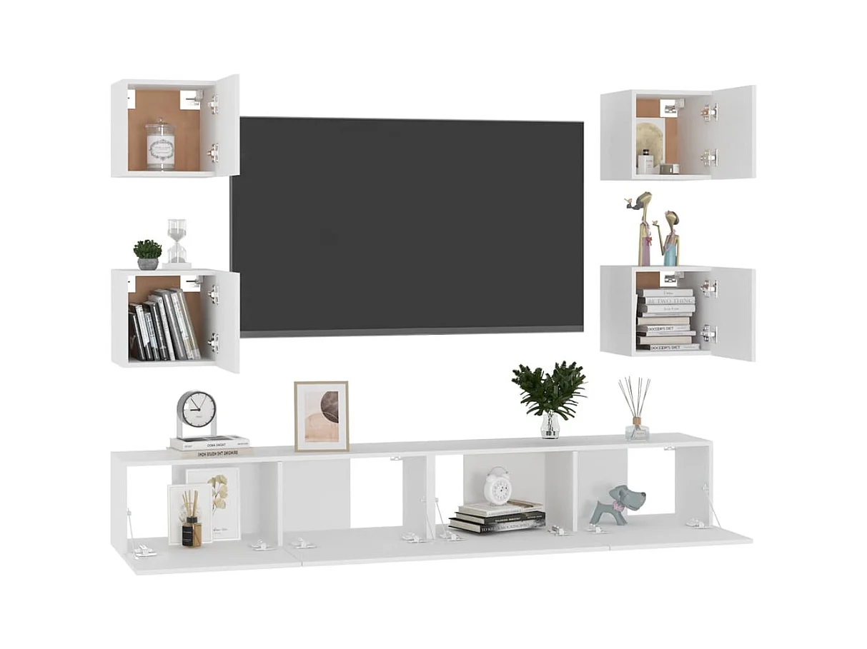 Conjunto de soporte para TV de 6 piezas, blanco, madera de ingeniería