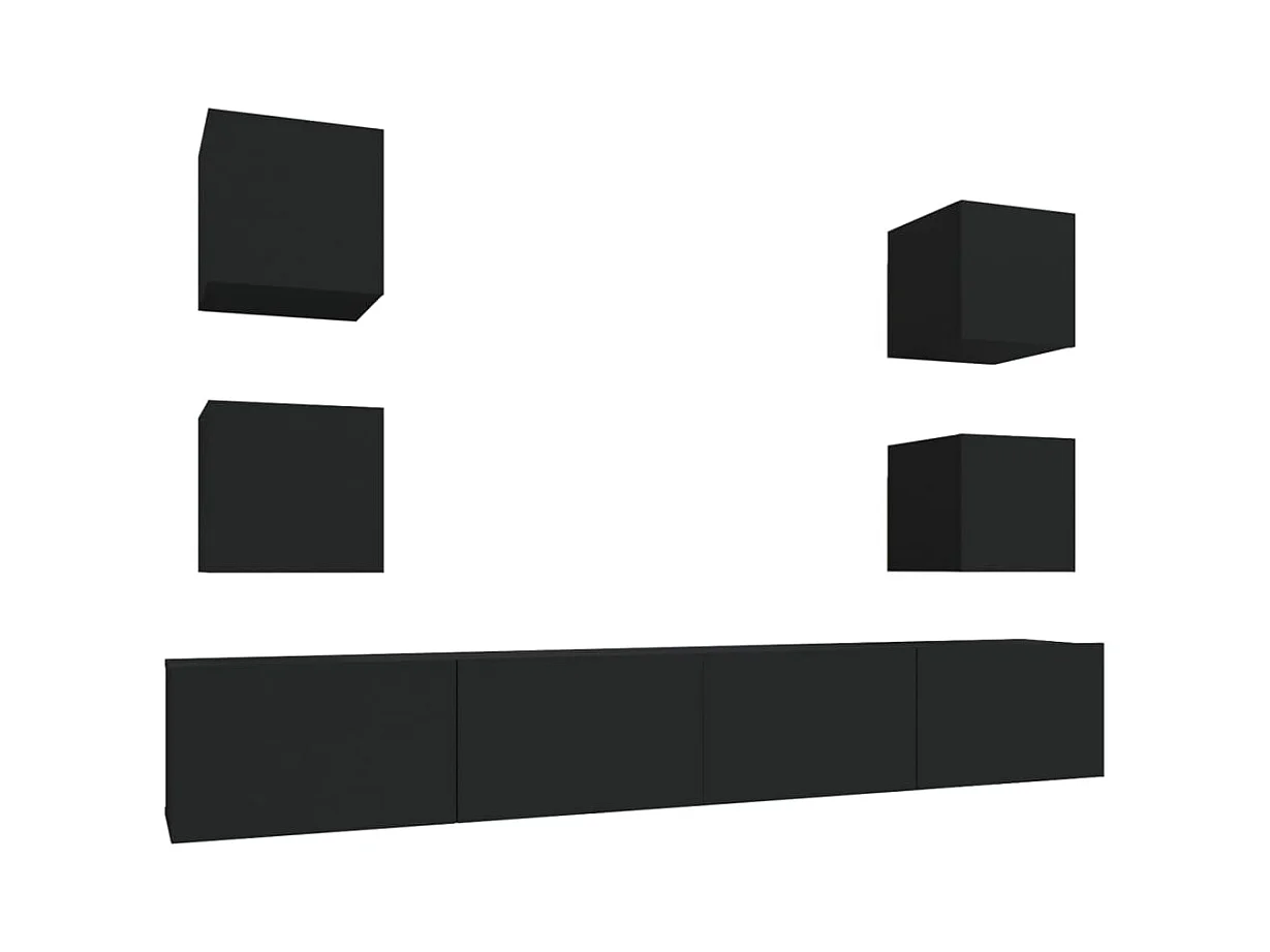 Conjunto de soporte para TV de 6 piezas de madera de ingeniería negra