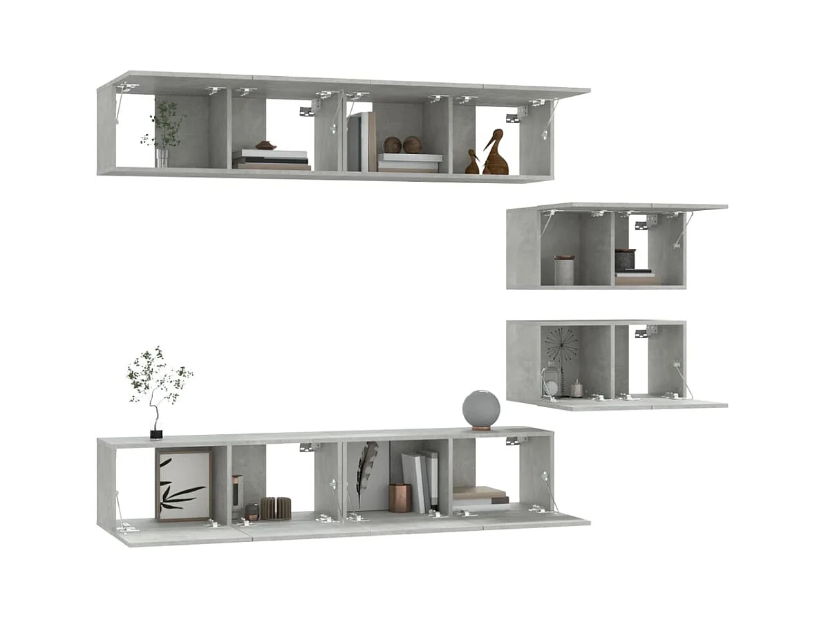 Conjunto de soporte para TV de 6 piezas en madera de ingeniería gris hormigón