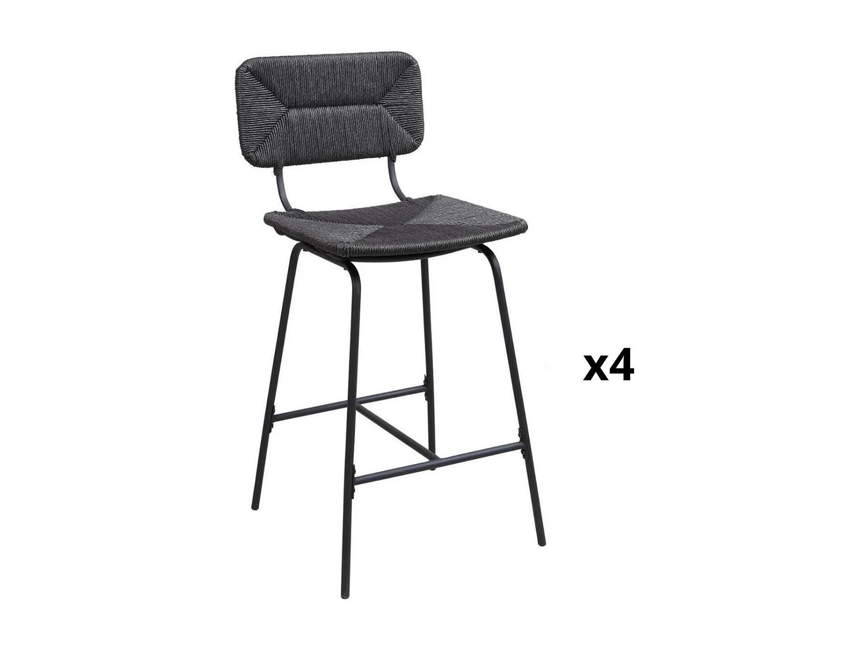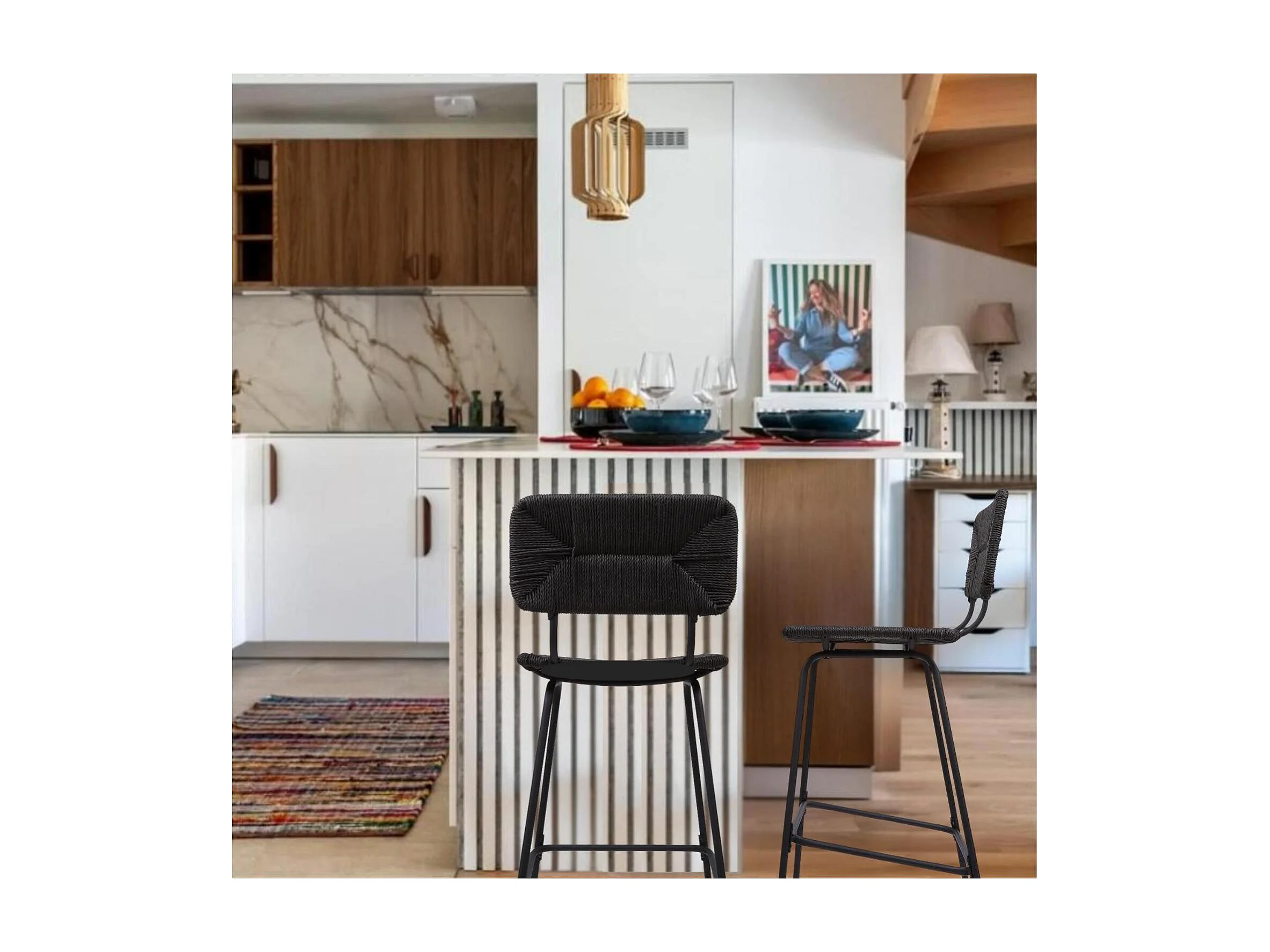 Conjunto de taburetes de bar e isla de metal con asiento de ratán 65cm KUTA