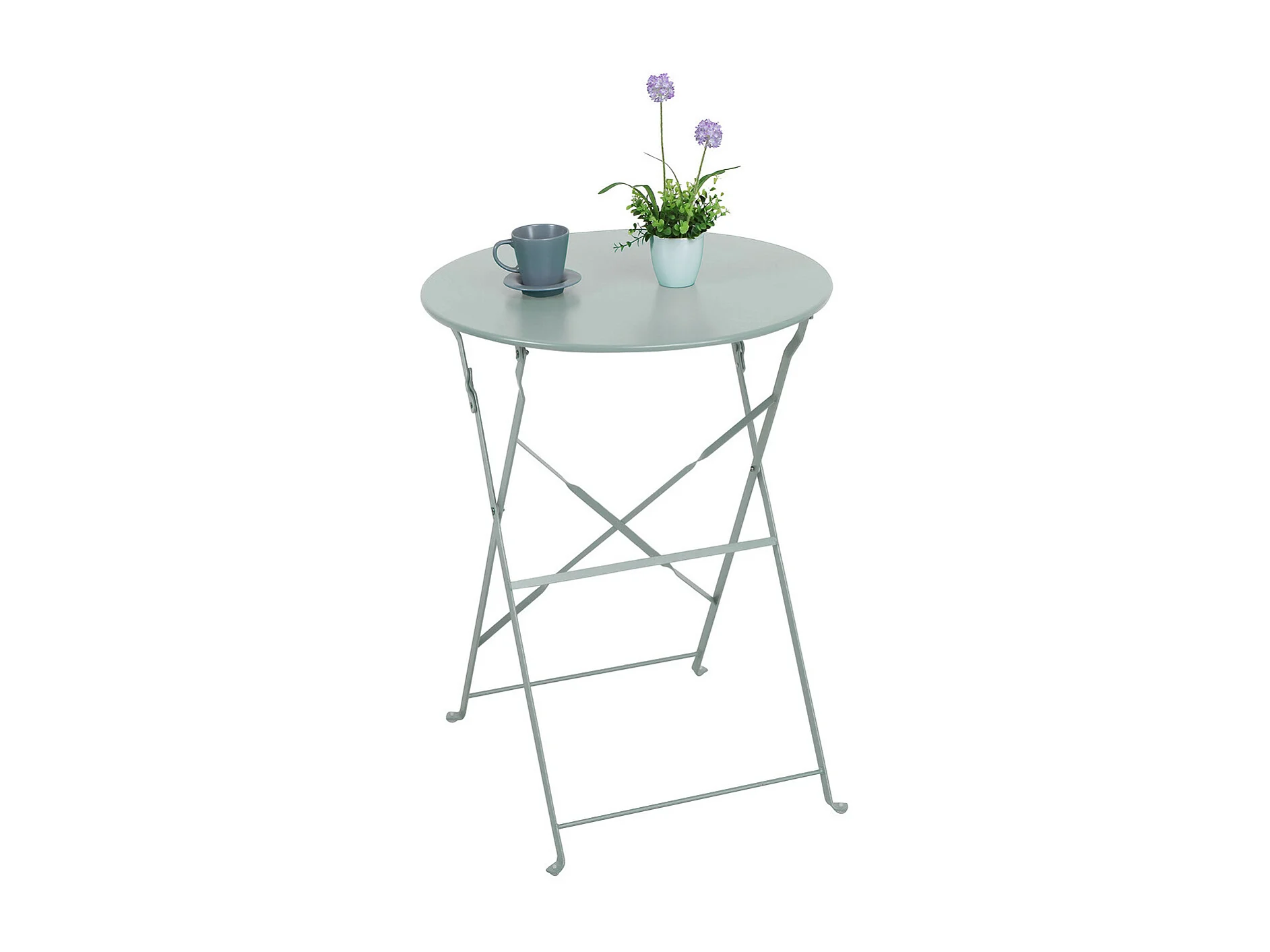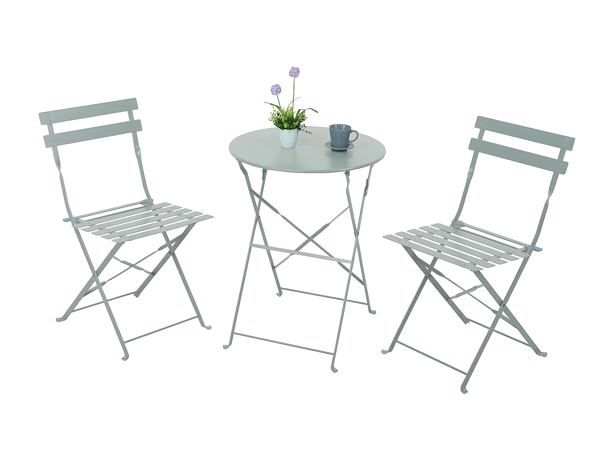 Conjunto de Terraza Plegable Metálico de 2 Sillas y Mesa Redonda Bistreau Gris Thinia Home