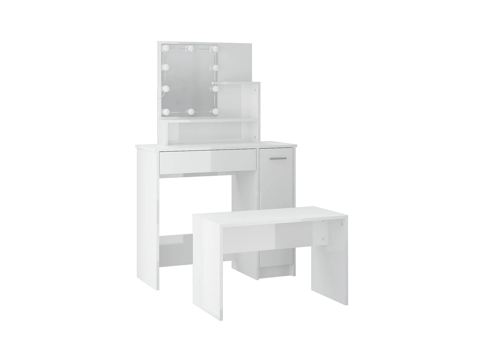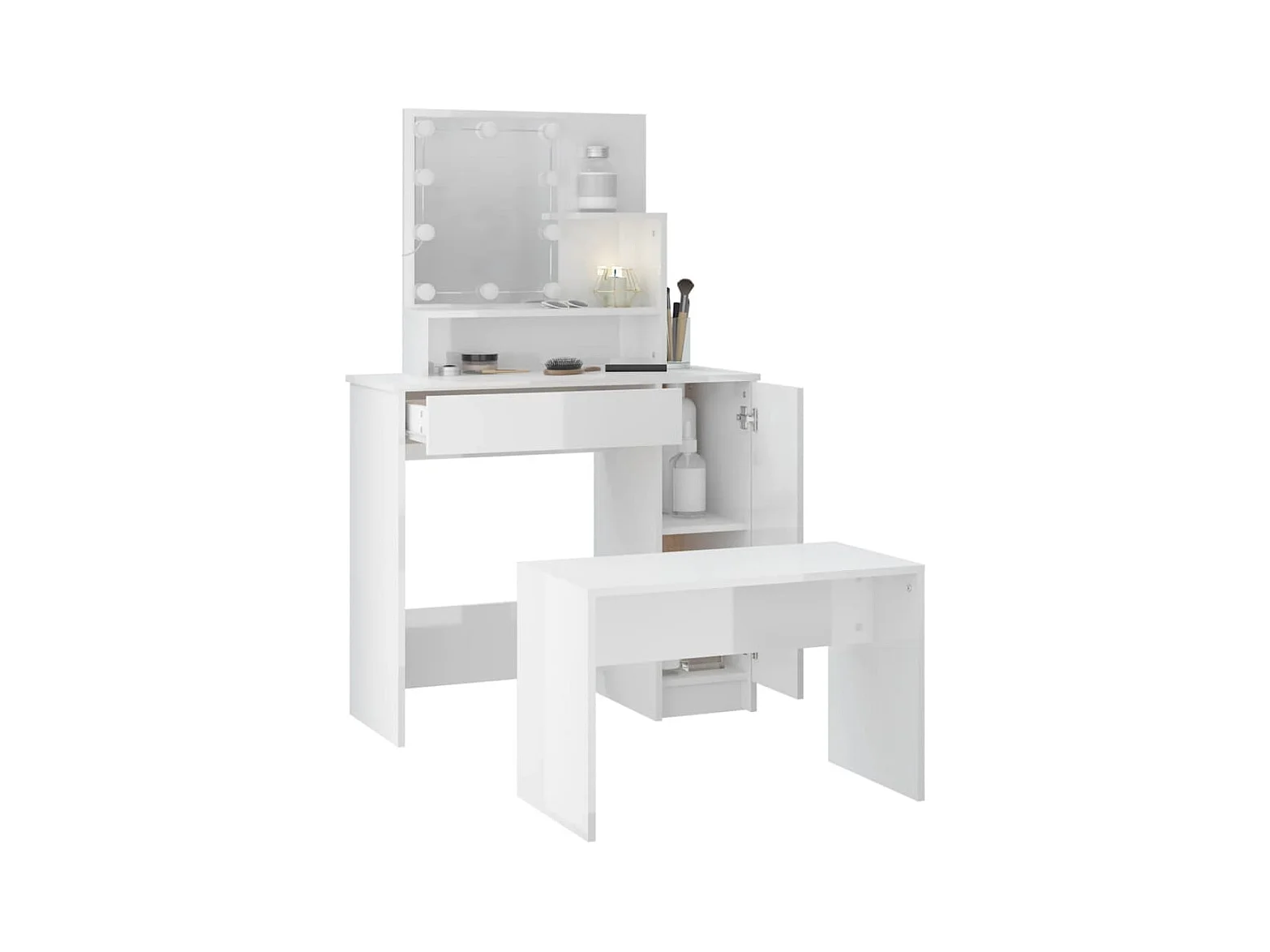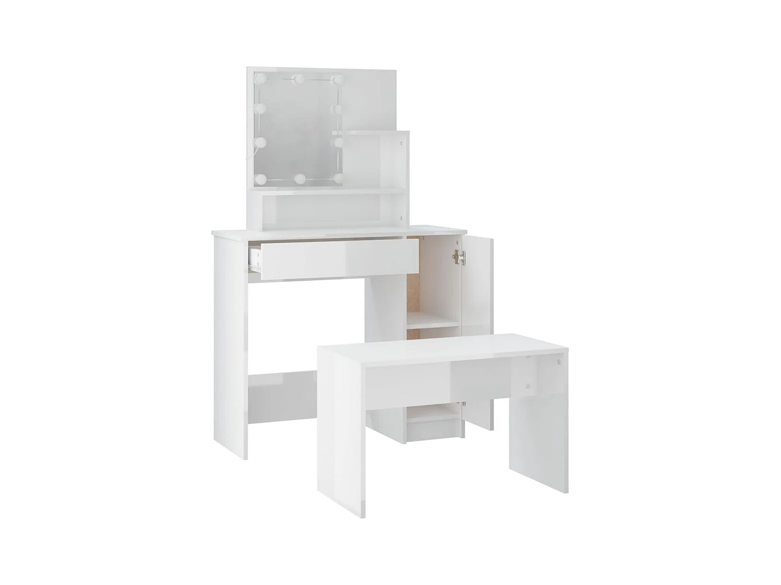 Conjunto de tocador LED de madera de ingeniería blanca brillante