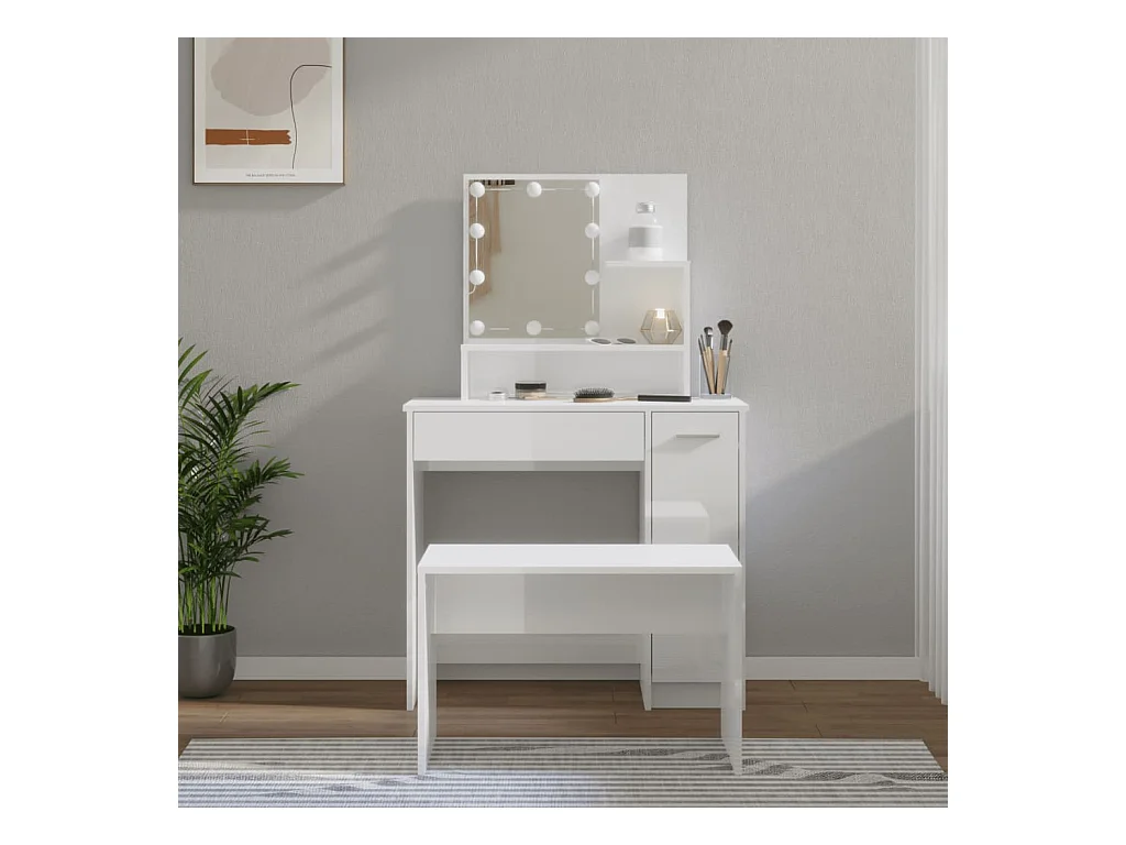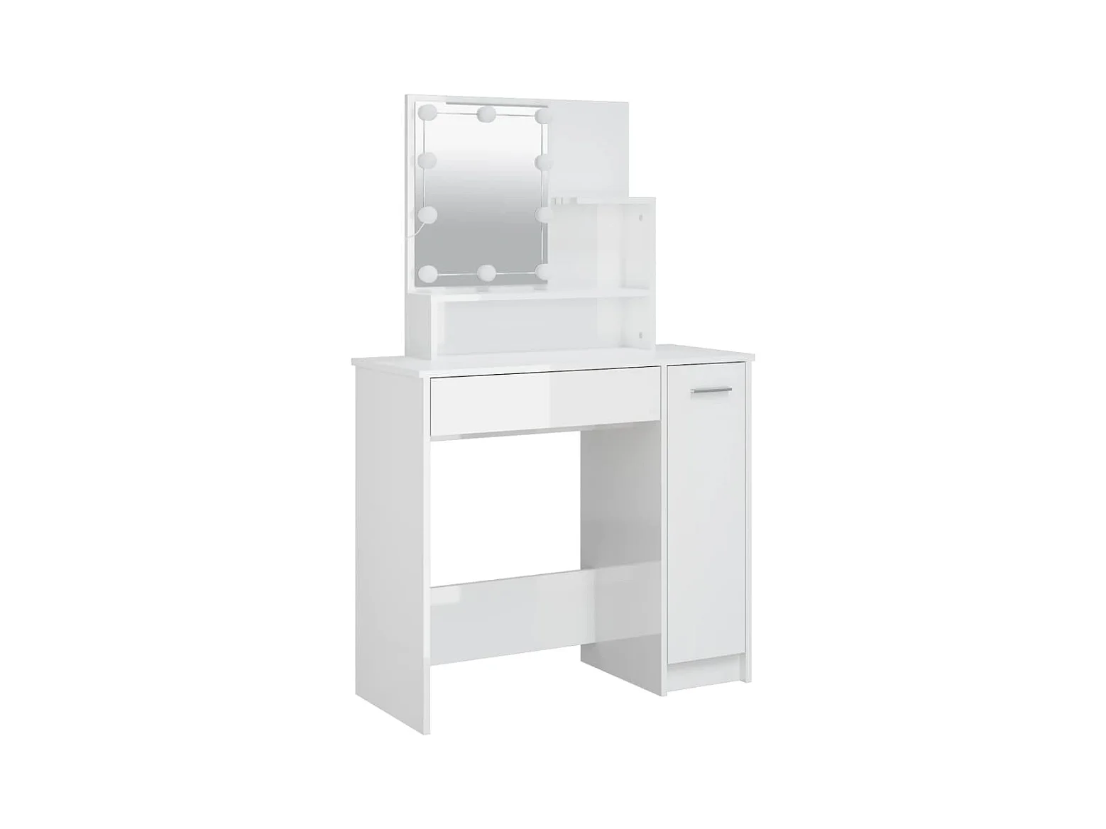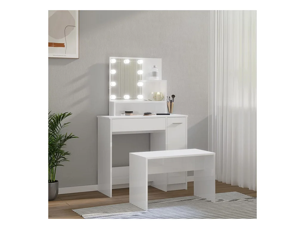 Conjunto de tocador LED de madera de ingeniería blanca brillante