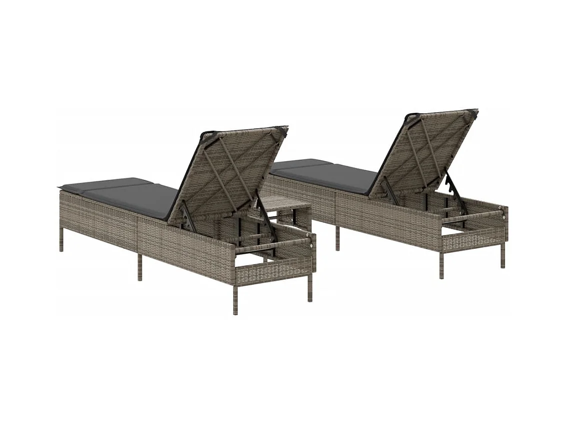 Conjunto de 2 tumbonas con mesa de mimbre de resina gris