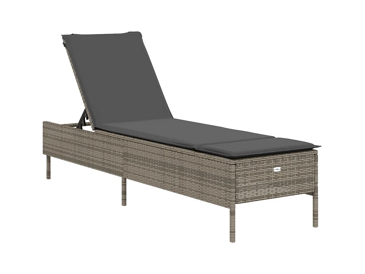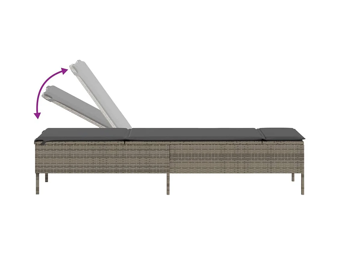 Chaise longue con mesa y cojín gris claro de resina trenzada