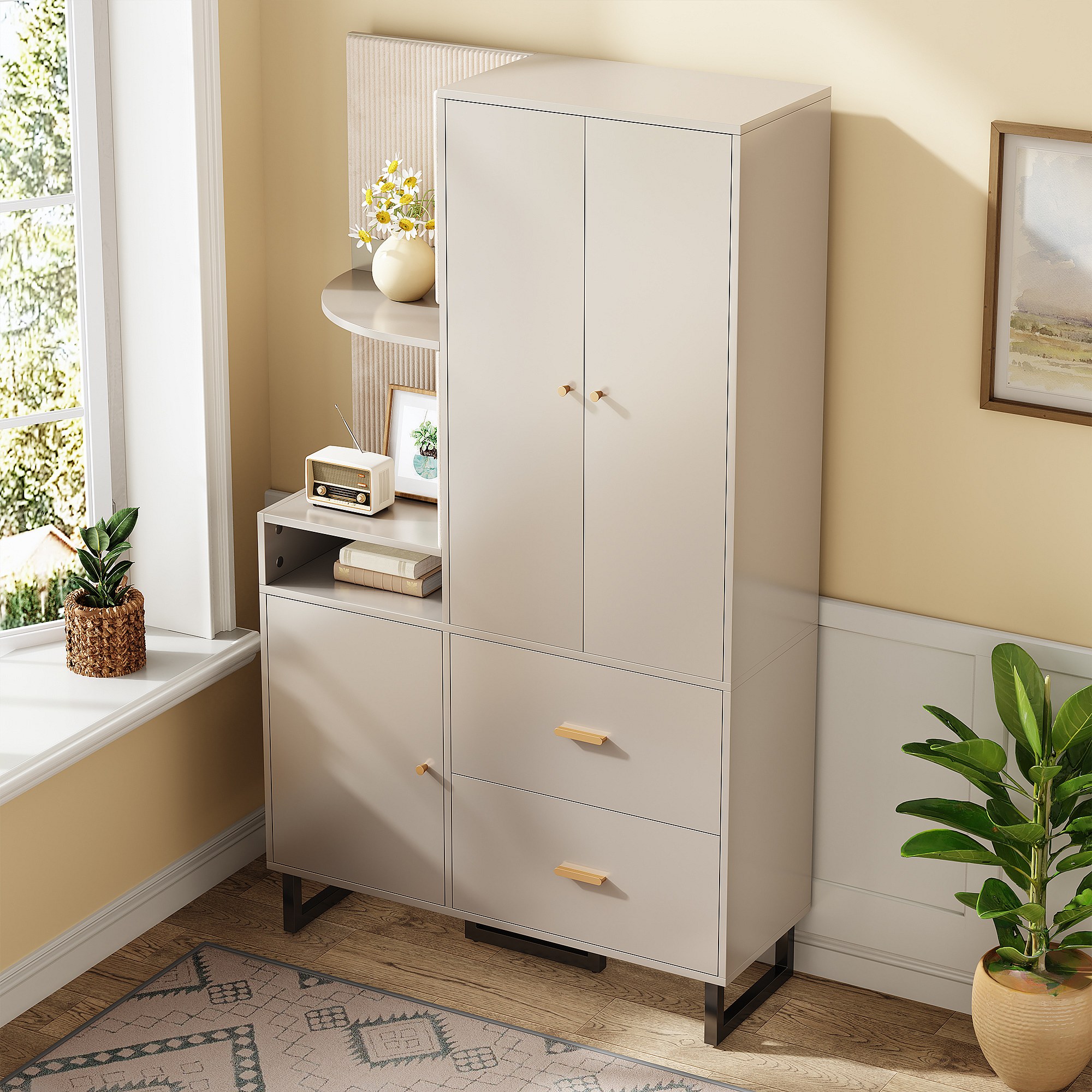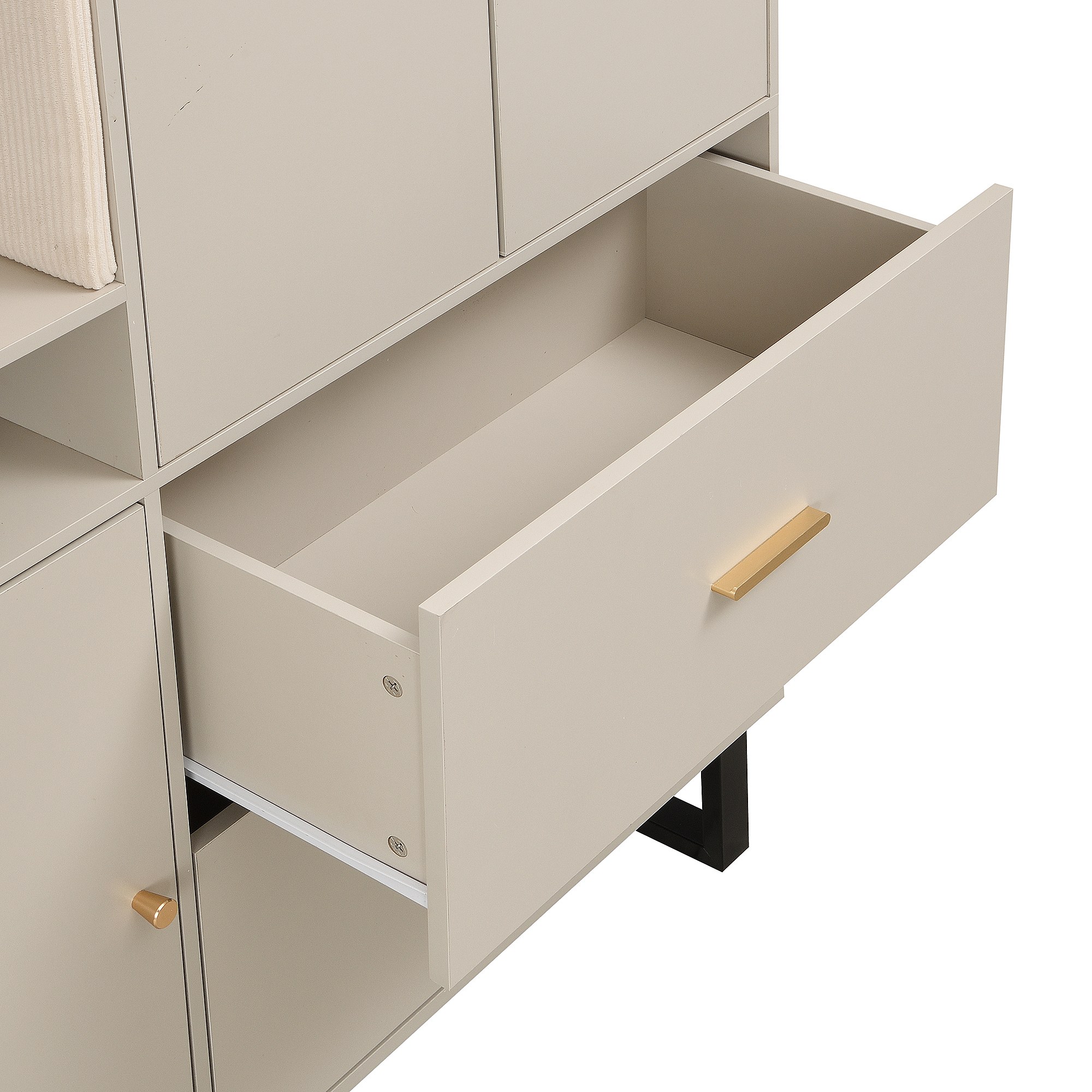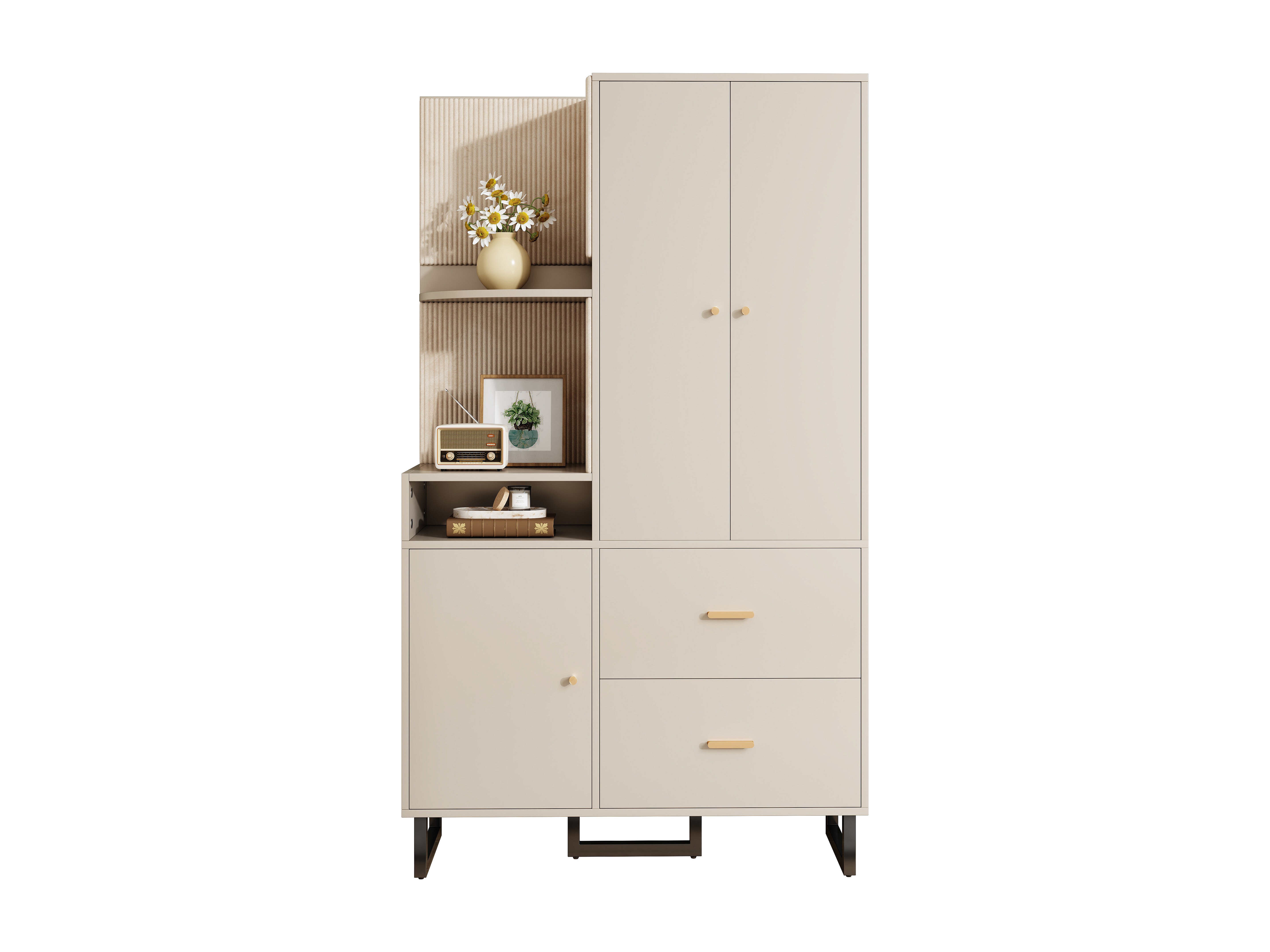 Conjunto de vestidor de entrada 110x38x186 cm - 3 puertas y 2 cajones - Con colgador - Estantes abiertos - Beige y gris