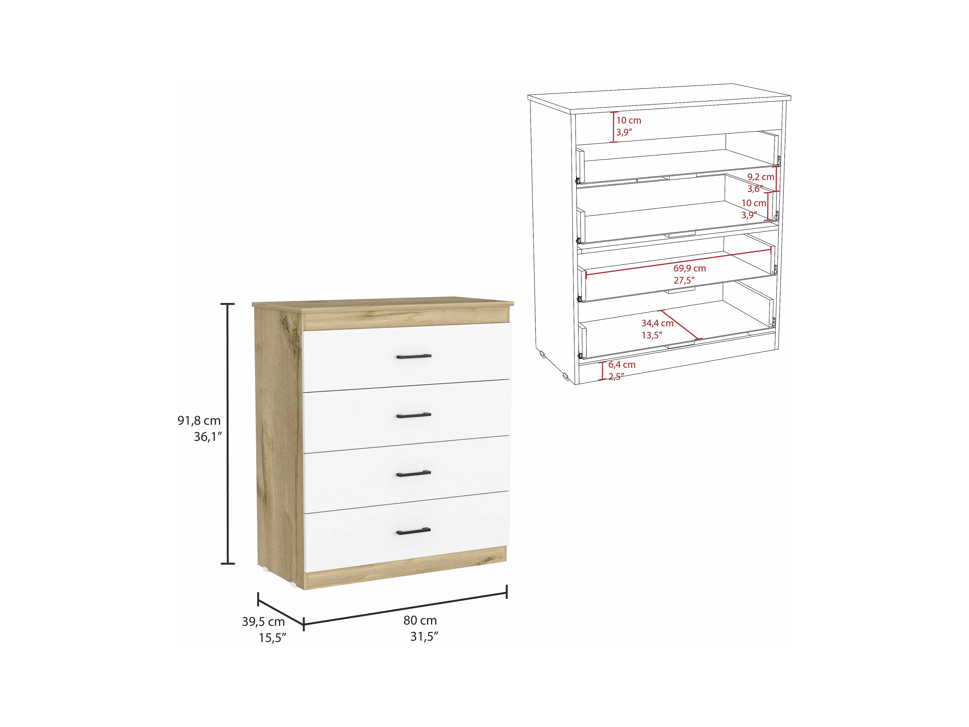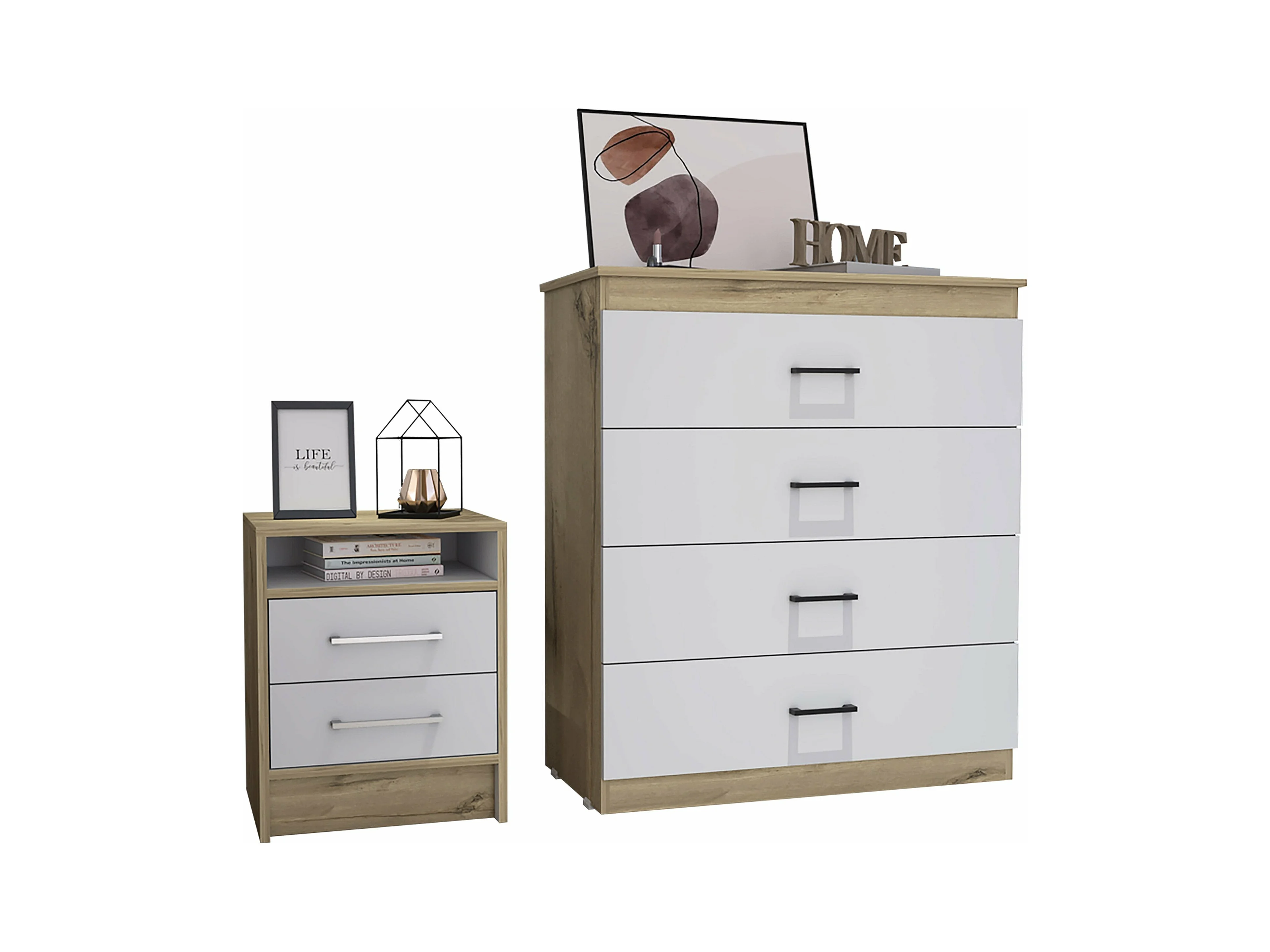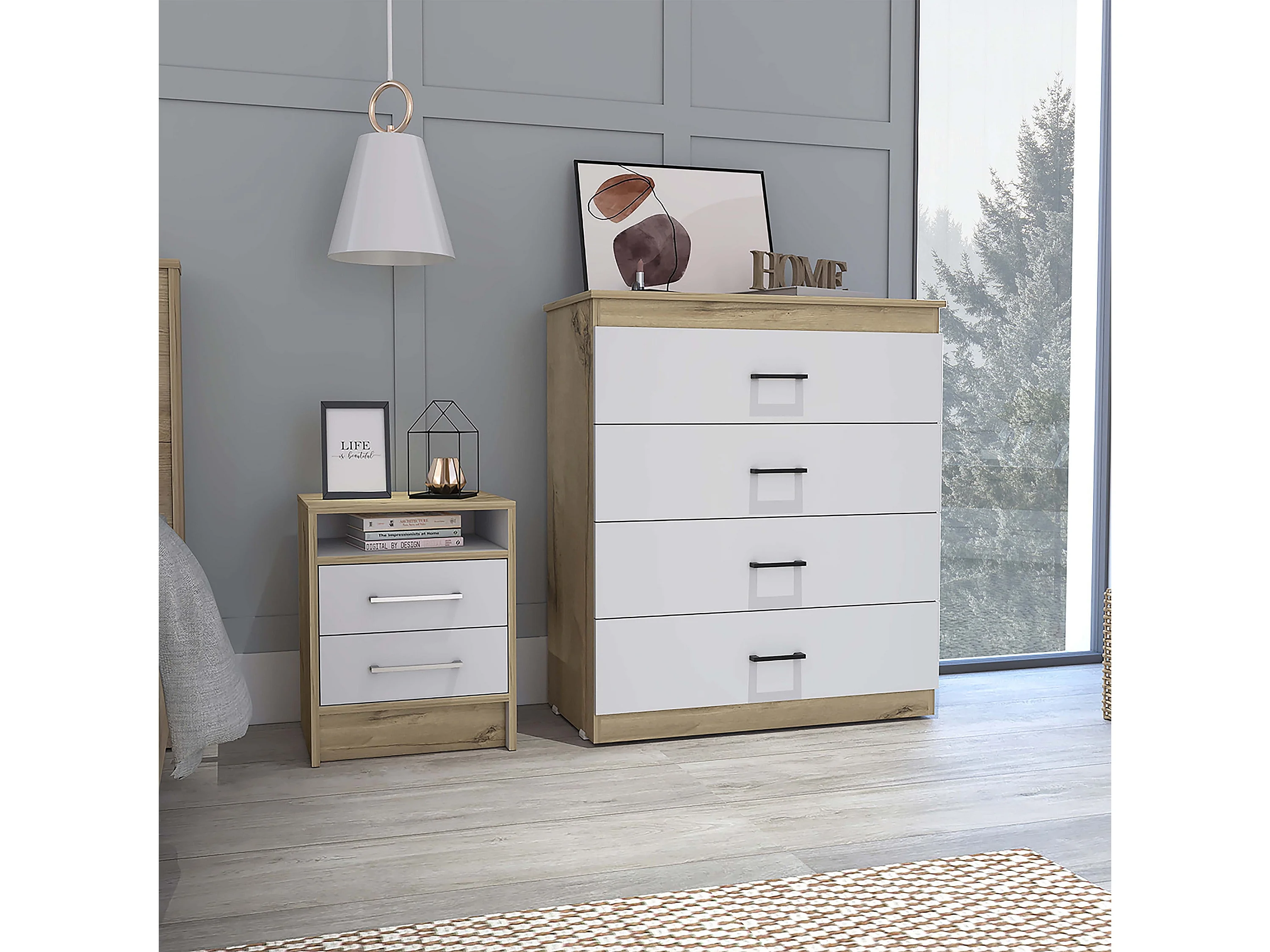 Conjunto Eter, Mesita De Noche + Comoda 4 Cajones