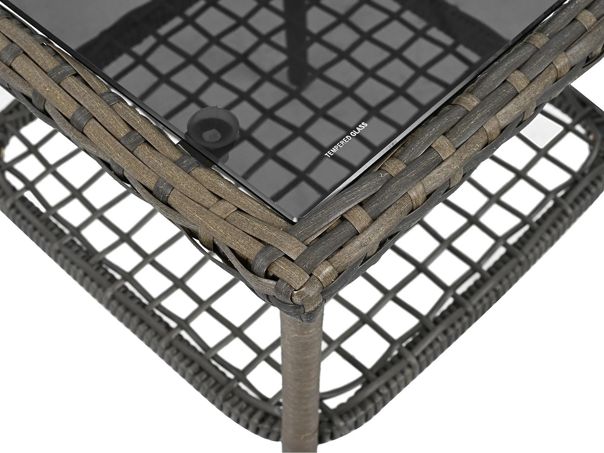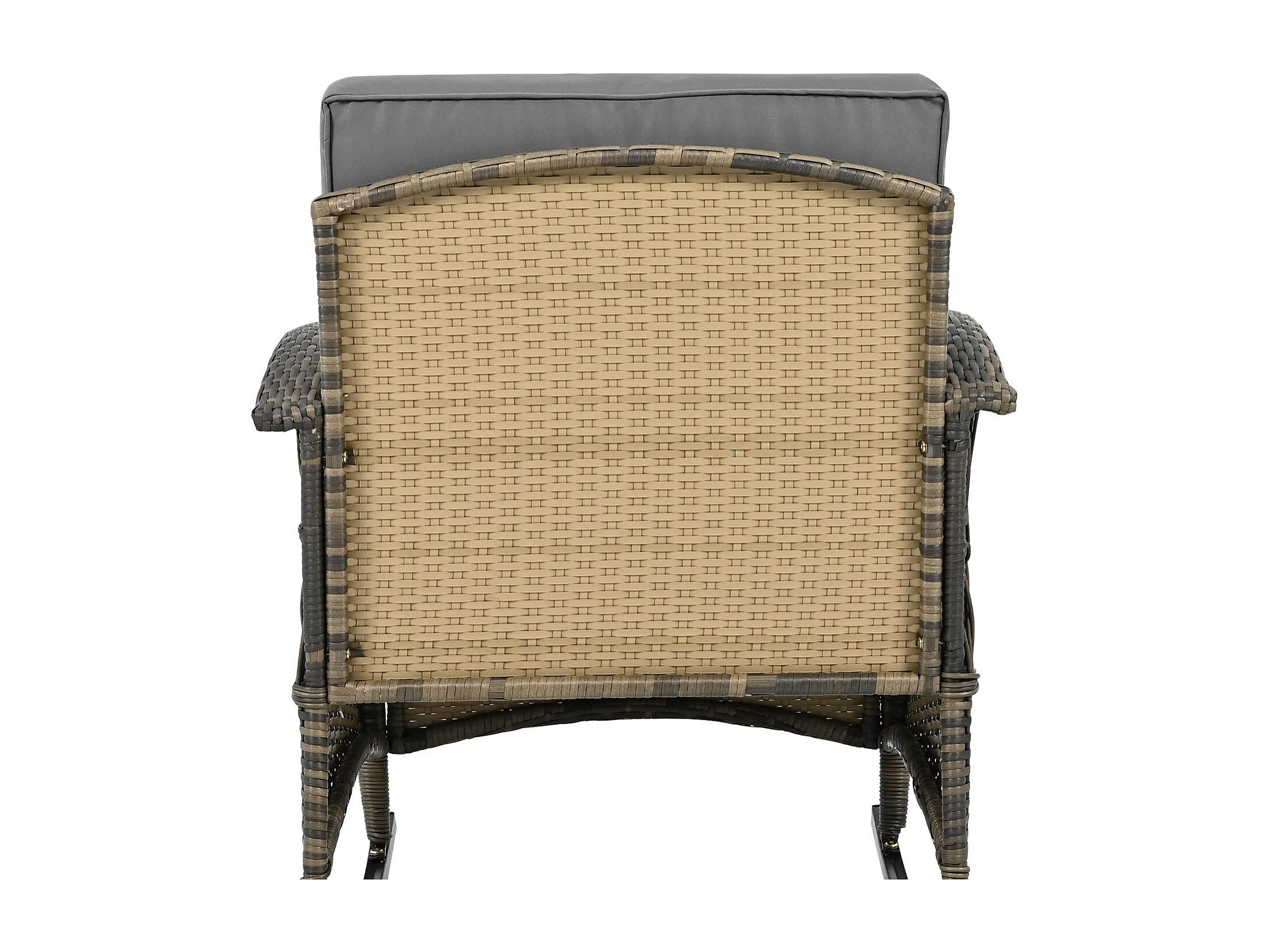 Conjunto Jardín - 2 Mecedoras con Mesa de Vidrio Templado - Respaldo Alto - Ratán Sintético y Acero Galvanizado - Carga Máx. 160kg - Para Terraza/Balcón/Jardín