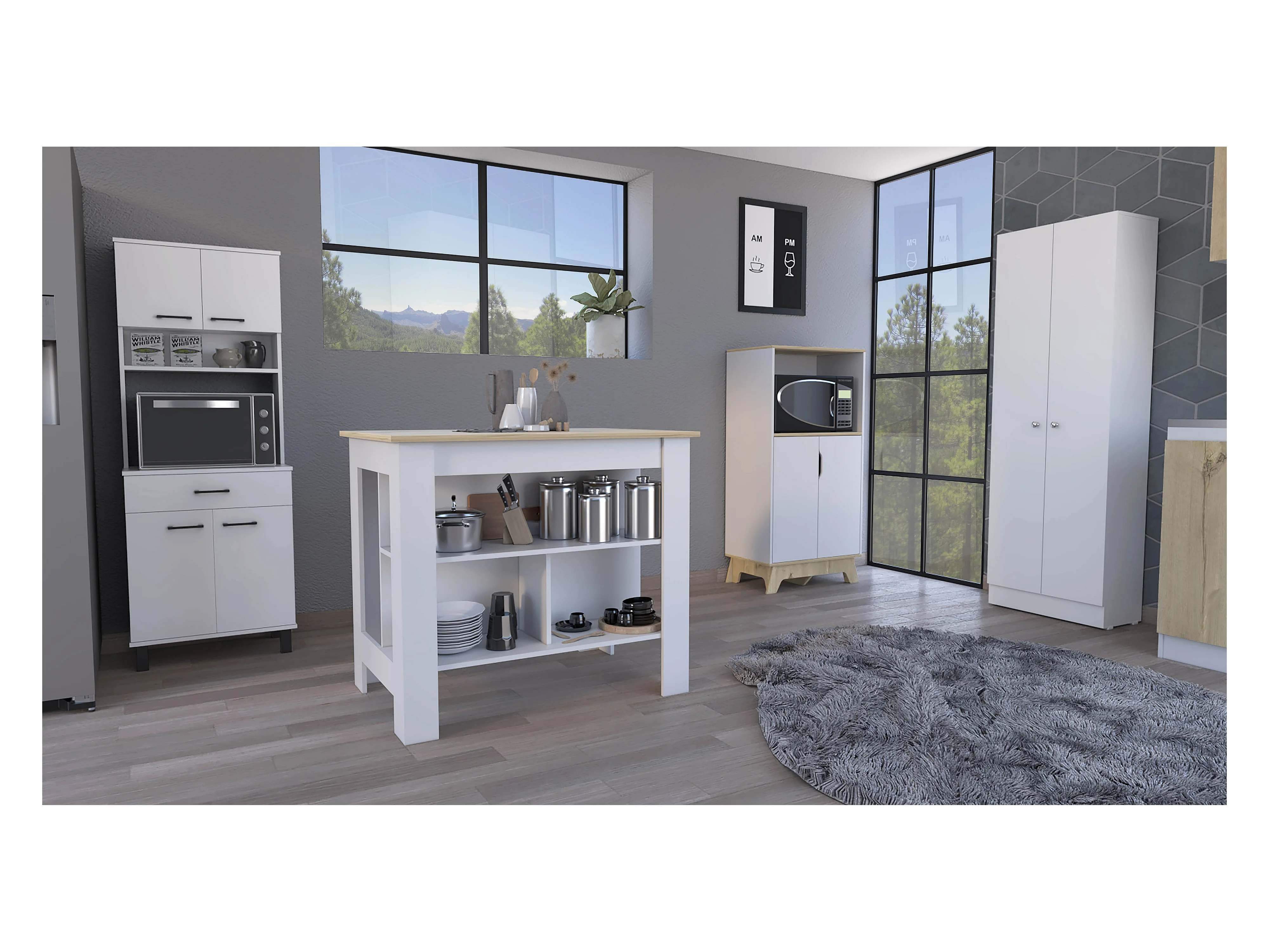 Conjunto Linea Z Cocina, Mueble Auxiliar Para Microondas Z-65 + Alacena Buffet Cocina Z-60 + Armario Aparador Alto De Cocina Z-60 2 Puertas + Isla De Cocina Cala