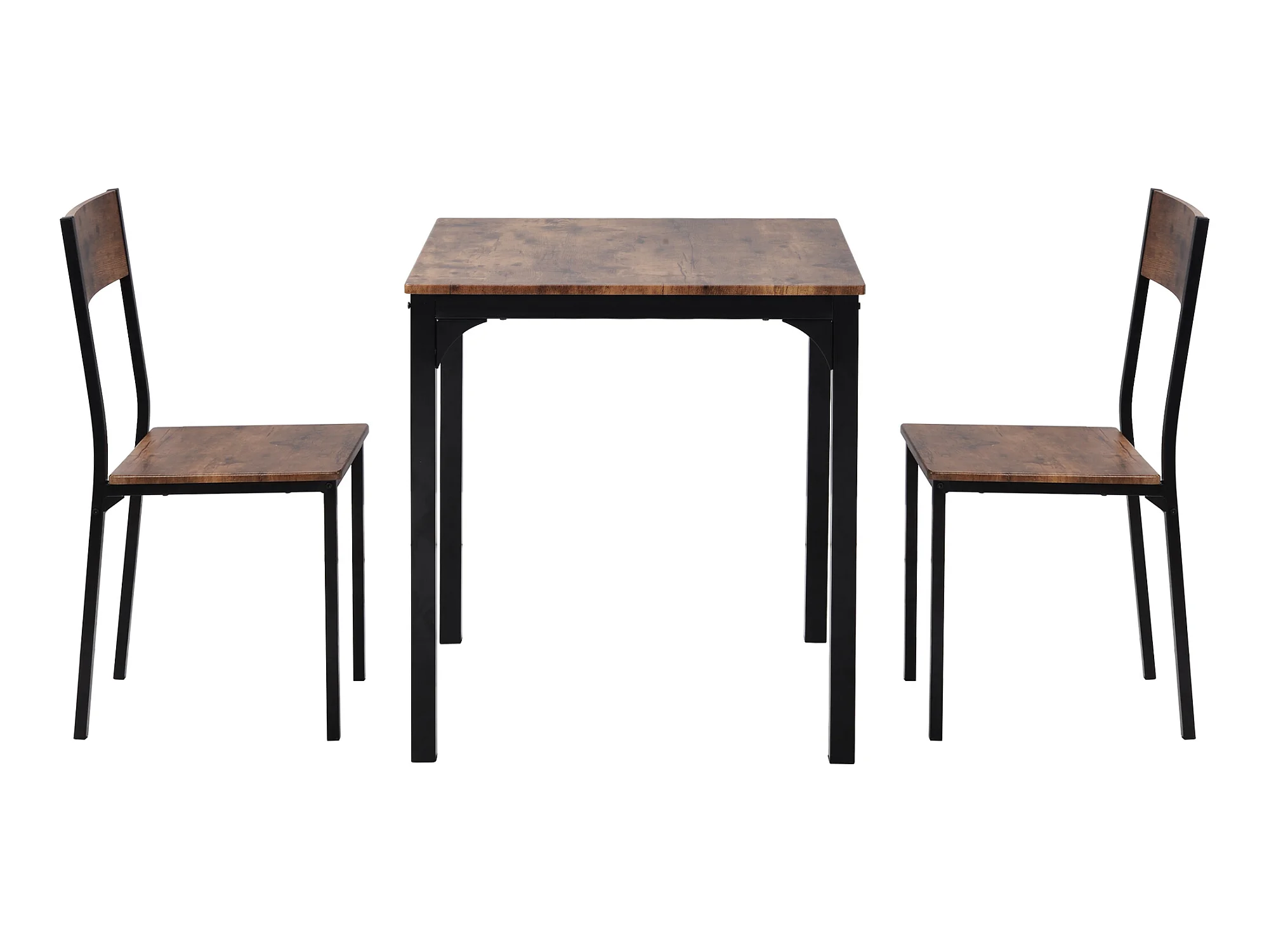 Conjunto de mesa cuadrada y 2 sillas de comedor, estructura de metal, color marrón.