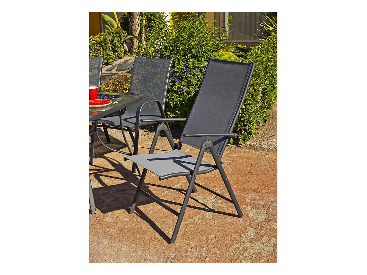 Conjunto de mesa + 4 sillones en acero Cordoba/Sulam-90/4 en acabado gris antracita.