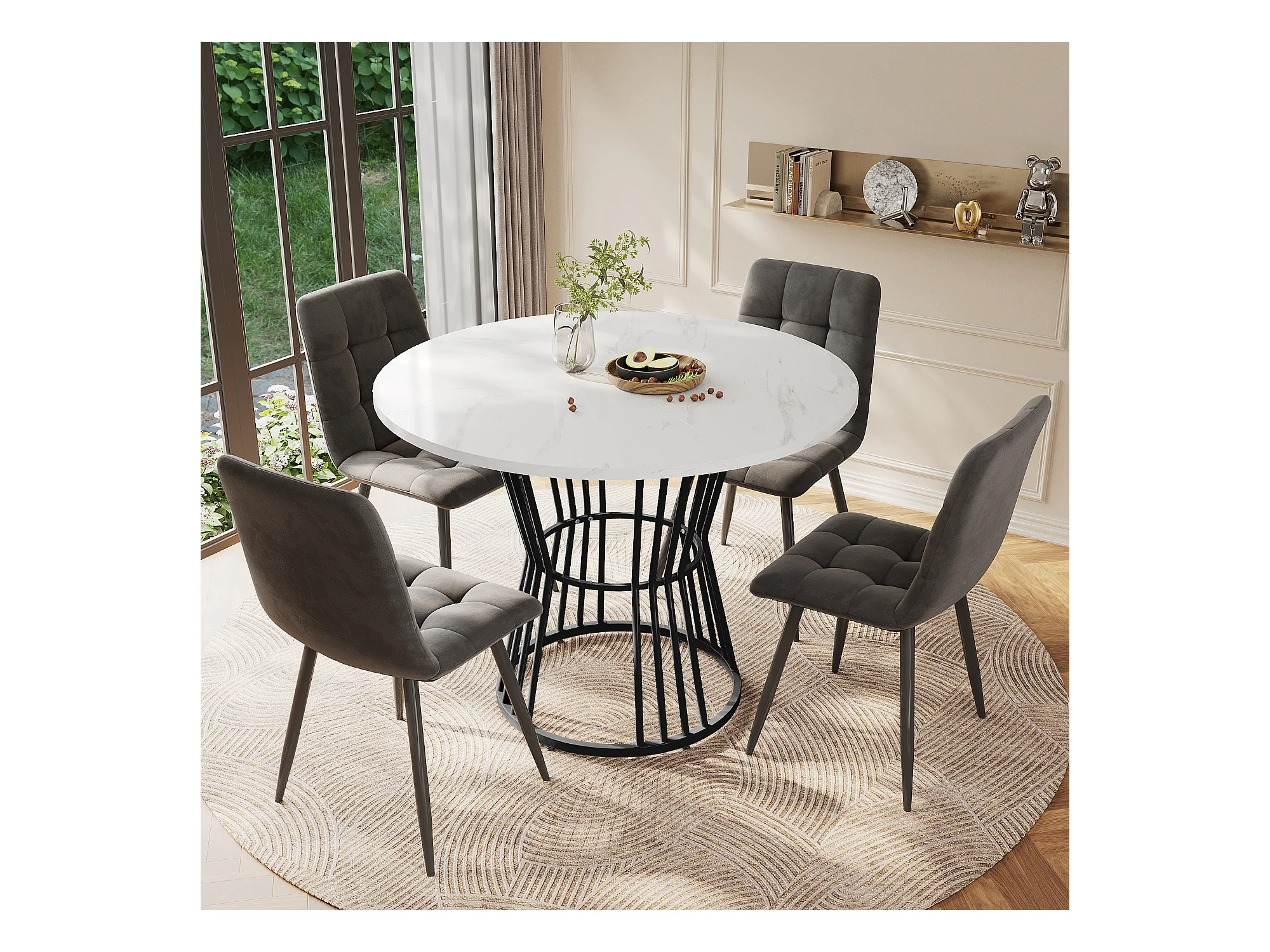 Conjunto mesa redonda 100cm metal MDF 4 sillas terciopelo gris oscuro comedor
