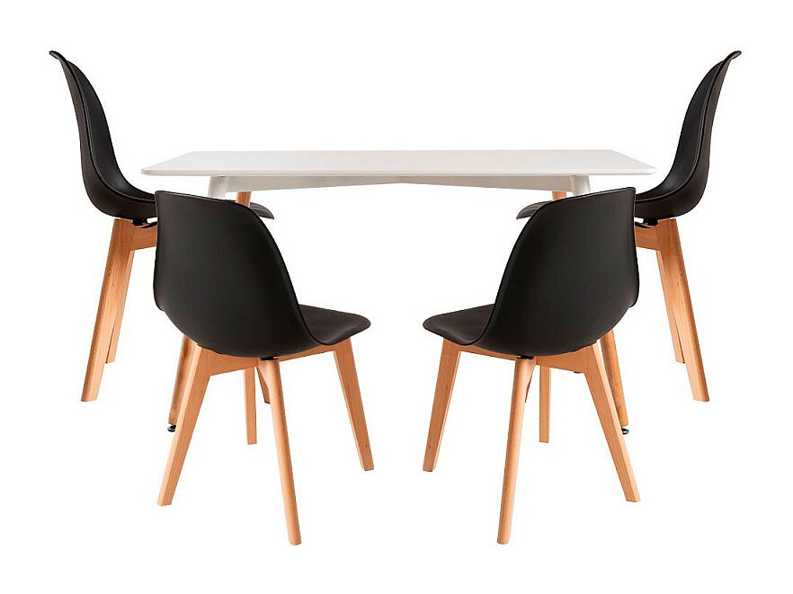 Conjuntos de mesa y sillas - Conjunto Mesa Tower Rectangular 120 x 80 cm Blanca y Pack 4 Sillas Kelen - Negro