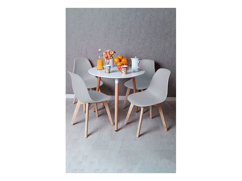 Descuento extra - Conjunto Mesa Tower Redonda 80 cm Blanca y Pack 4 Sillas Kelen - Gris