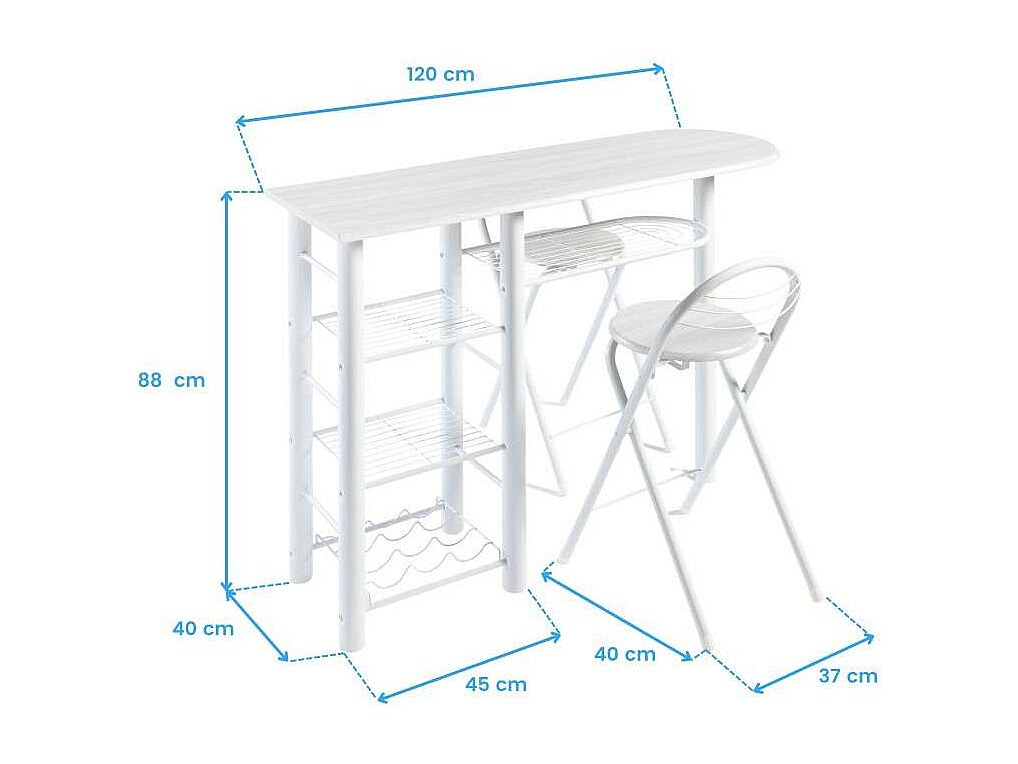 Conjunto mesa y 2 taburetes plegables cocina bar blanco 40x87.5x120 cm