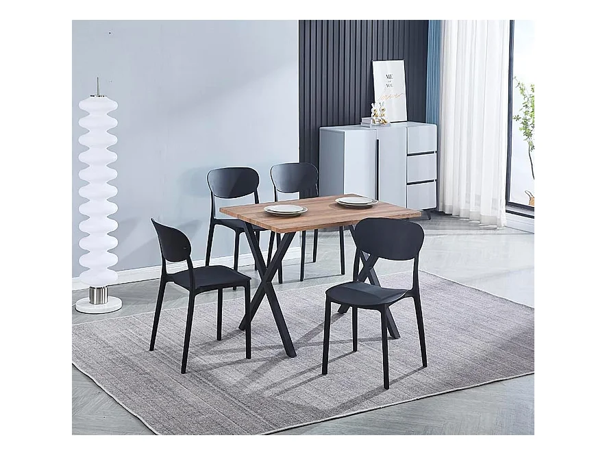 Conjunto Mesa y Sillas Comedor/Cocina: Mesa madera y Patas Metálicas En Negro (76x100x70 Cm) + 5 Sillas de Polipropileno Negro (80x40x55 Cm)