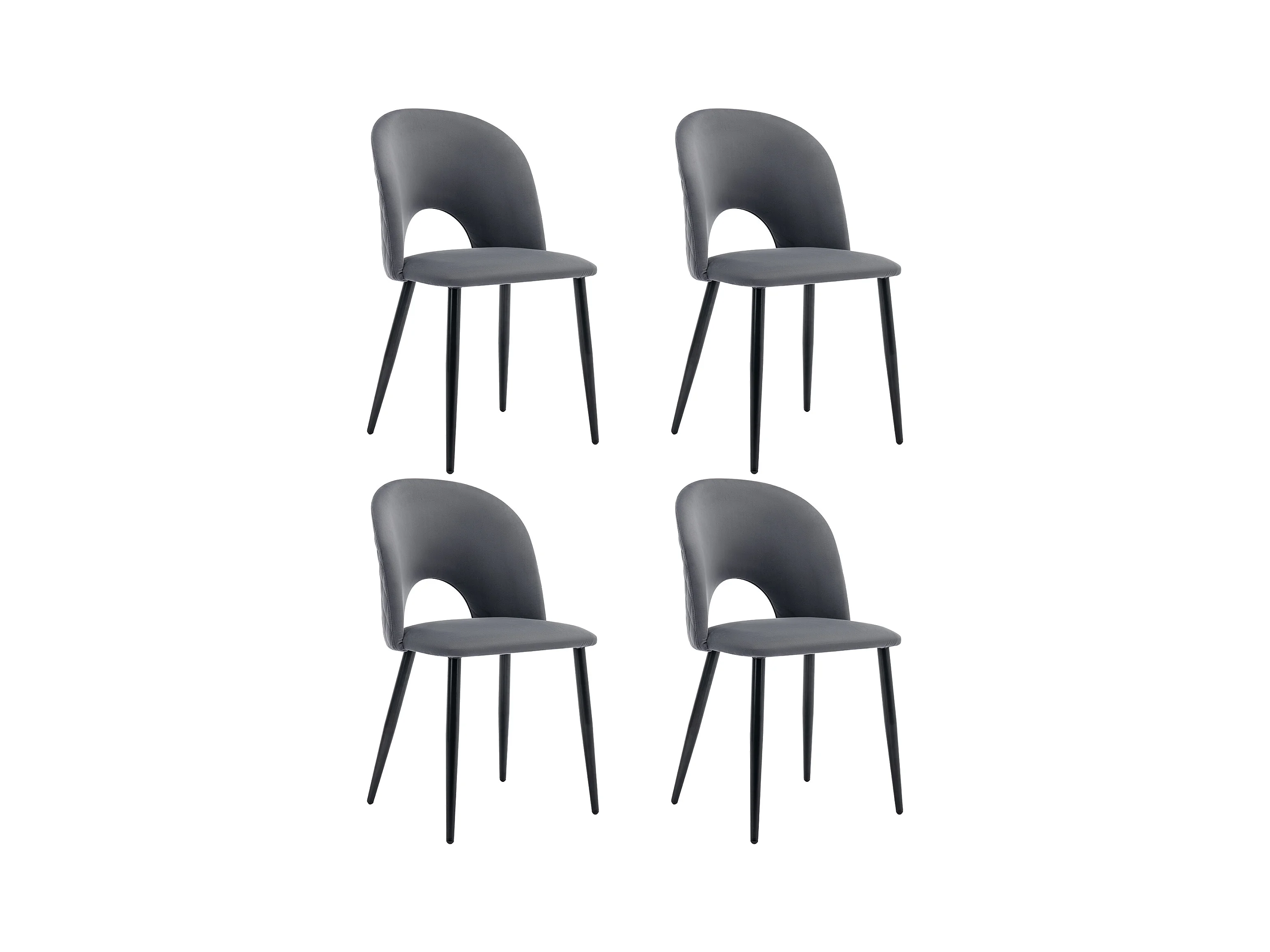 Juego de 4 sillas de terciopelo con patas de hierro negro - Gris