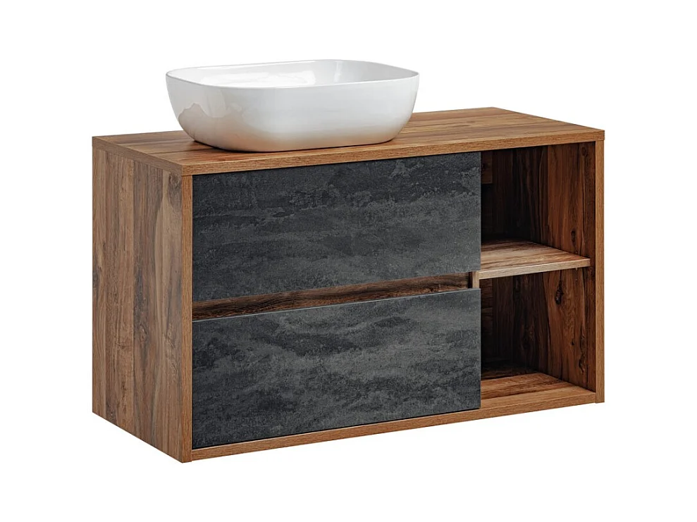 Conjunto de 3 muebles para baño KING – Roble oscuro y negro - 60 cm