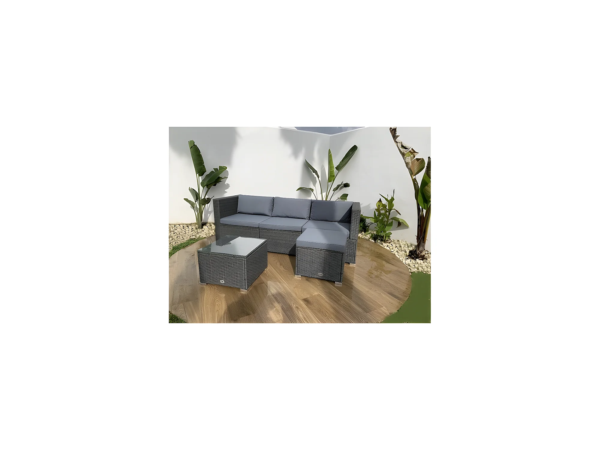 Conjunto Muebles de Jardín Muebles de Jardín Conjuntos Sofá Bahamas Conjunto Triple 4 Plazas Ratán sintético Gris KieferGarden
