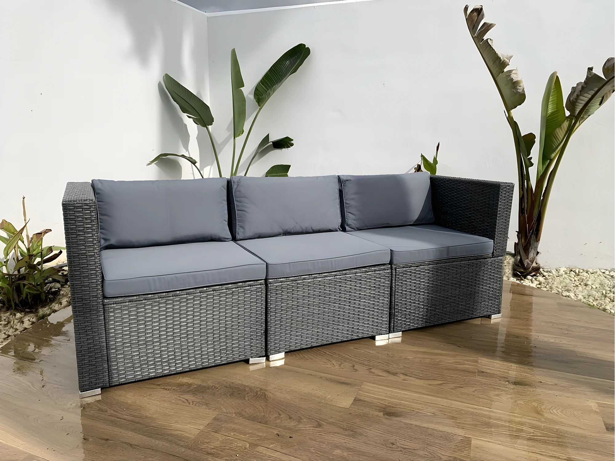 Conjunto Muebles de Jardín Muebles de Jardín Conjuntos Sofá Bahamas Sofá Triple 3 Plazas Ratán sintético Gris KieferGarden