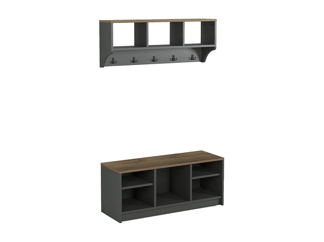 Conjunto muebles recibidor: banco zapatero y perchero de pared de madera Parson - Negro