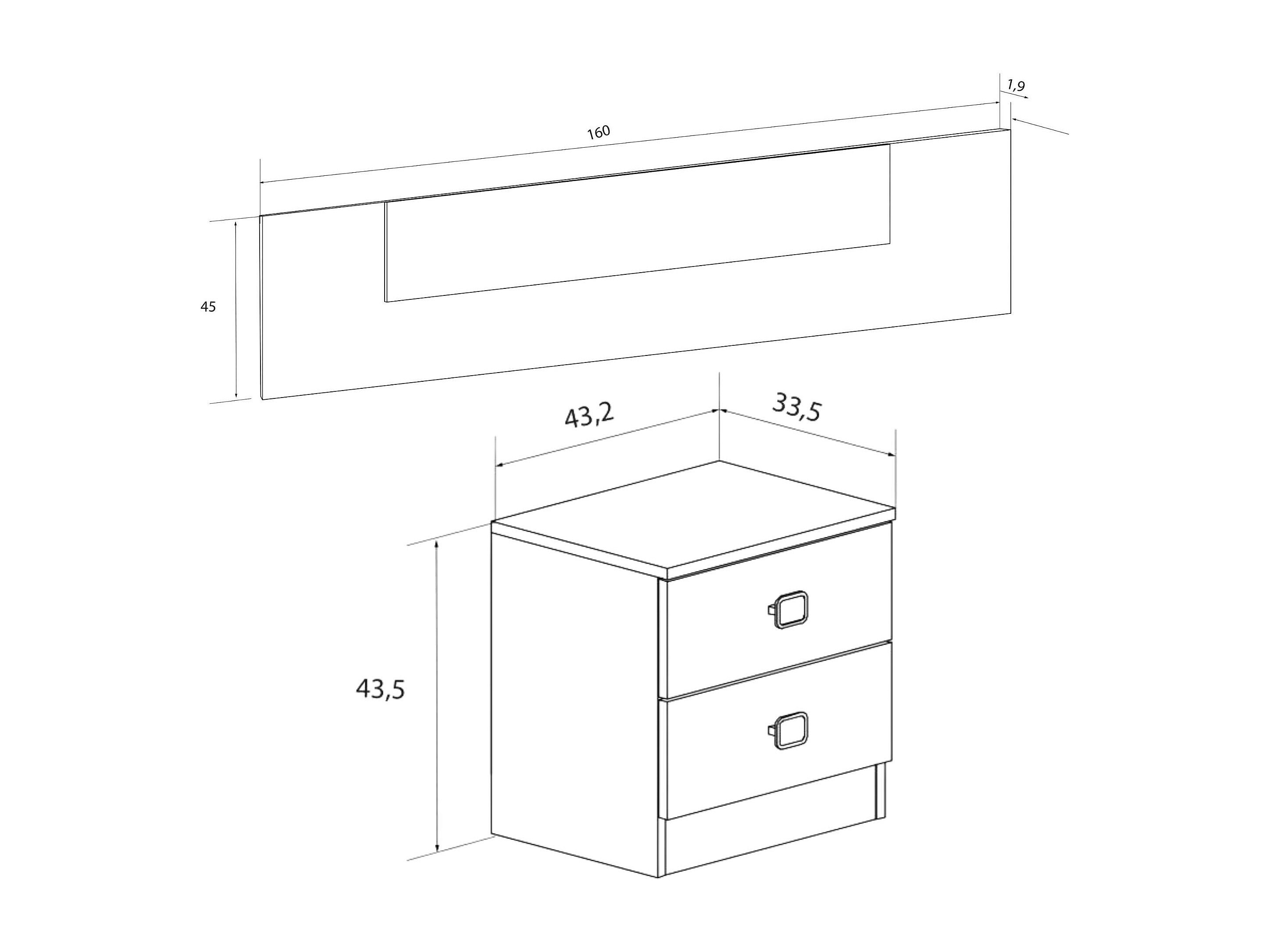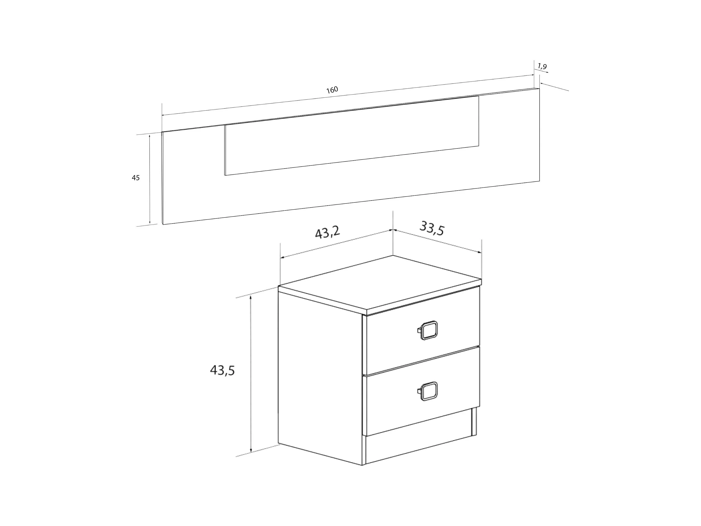 BricoExpo Pack Cabecero y 2 Mesitas de Noche, Color cambrian y blanco, Dormitorio Doble de Matrimonio o Juvenil, Medidas:160x45x1,6 cm