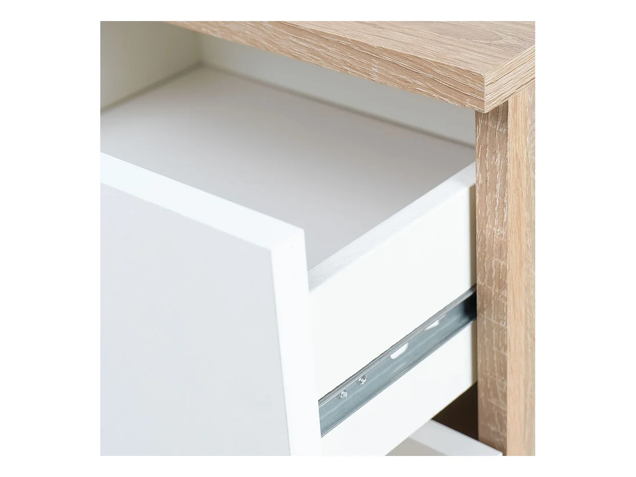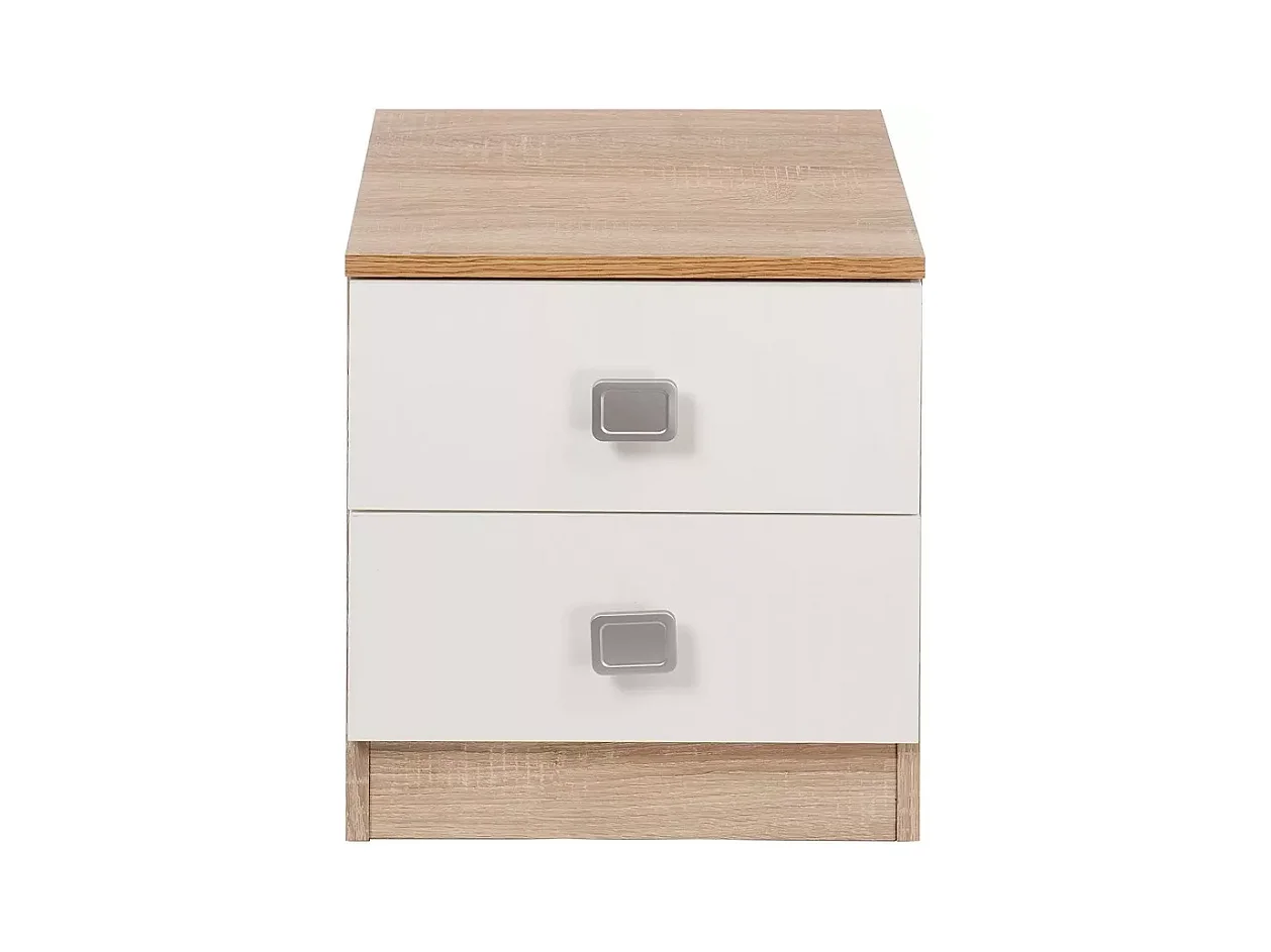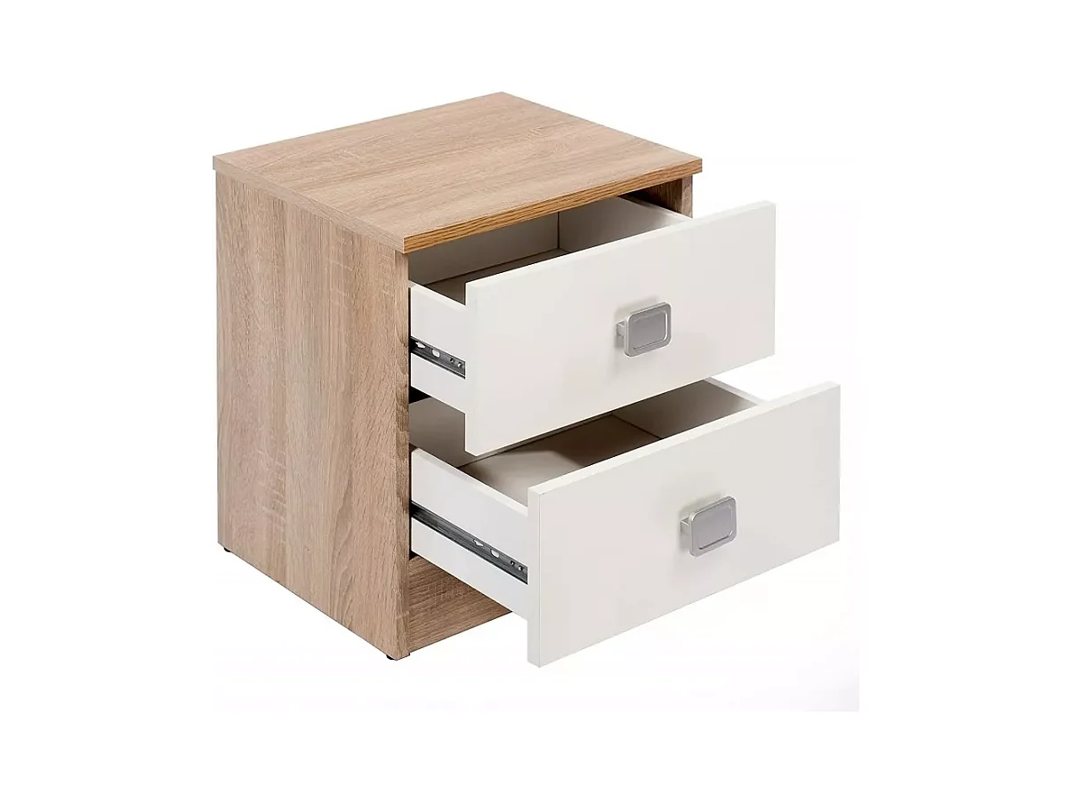 Meyvaser Mesita de noche 2 cajones Color blanco y Natural 52 cm (ancho) x 50 cm (alto) x 34,8 cm (fondo)