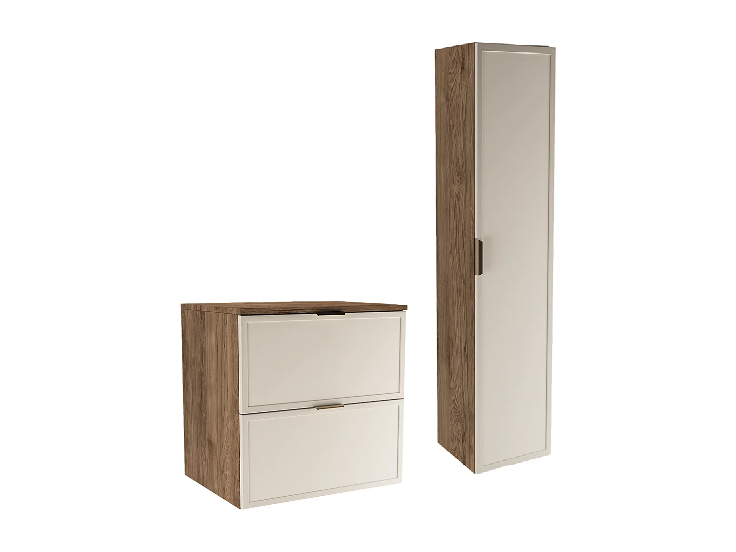 Conjunto para baño 60 cm Armario con encimera Columna Frentes Marco Roble Nogal / Cachemira Roma