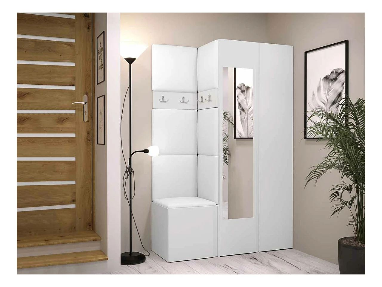 Conjunto pasillo Hartford 350, 186x116x44cm, Espejo, Blanco, Montada en la pared|Colocada