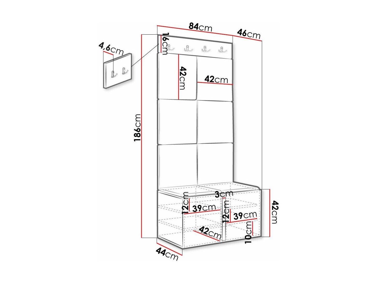 Conjunto pasillo Hartford 375, 186x84x46cm, Rojo|Blanco, MDF|Aglomerado laminado|Tapiz