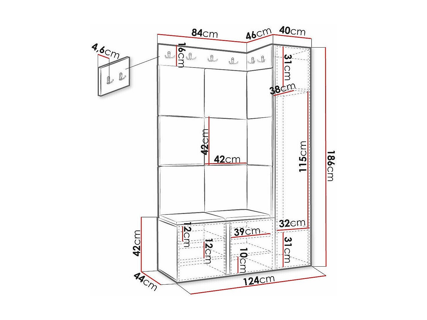 Conjunto pasillo Hartford 375, 186x84x46cm, Rojo|Blanco, MDF|Aglomerado laminado|Tapiz