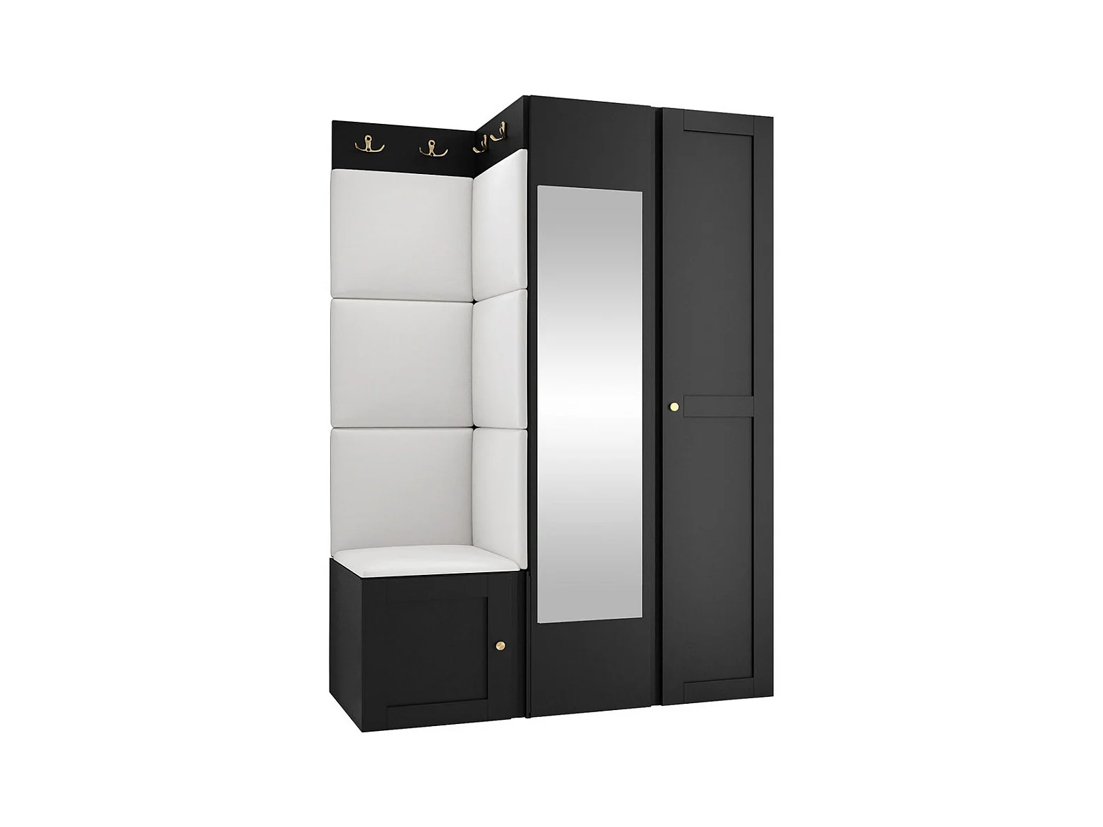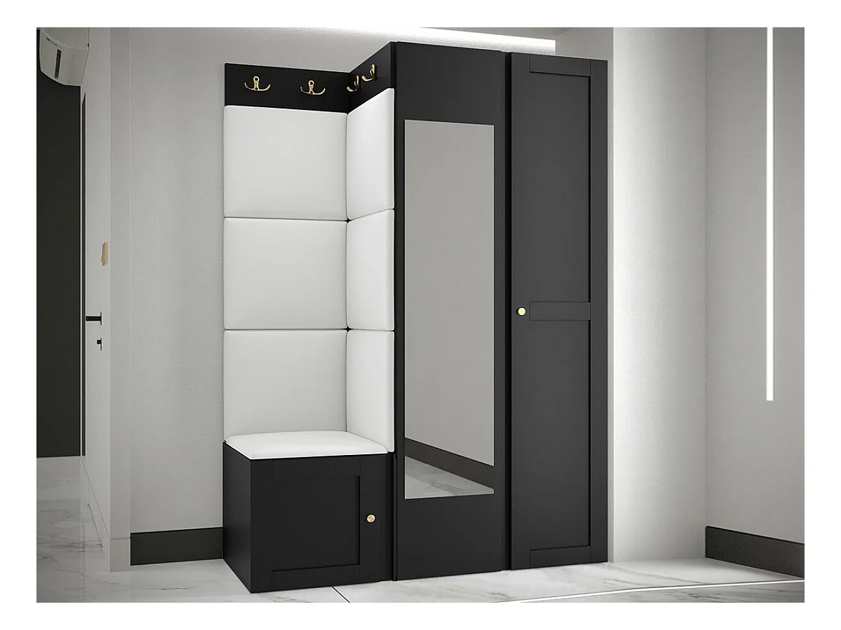 Conjunto pasillo Hartford 380, 186x116x46cm, Espejo, Blanco|Negro