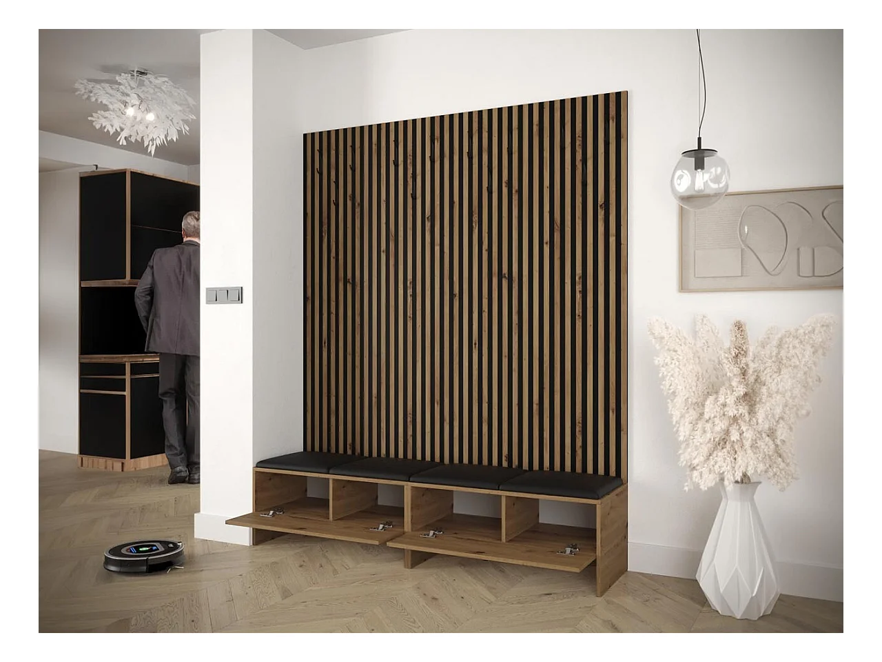 Conjunto pasillo Hartford 387, 186x116x46cm, Negro|Blanco, MDF|Aglomerado laminado|Tapiz