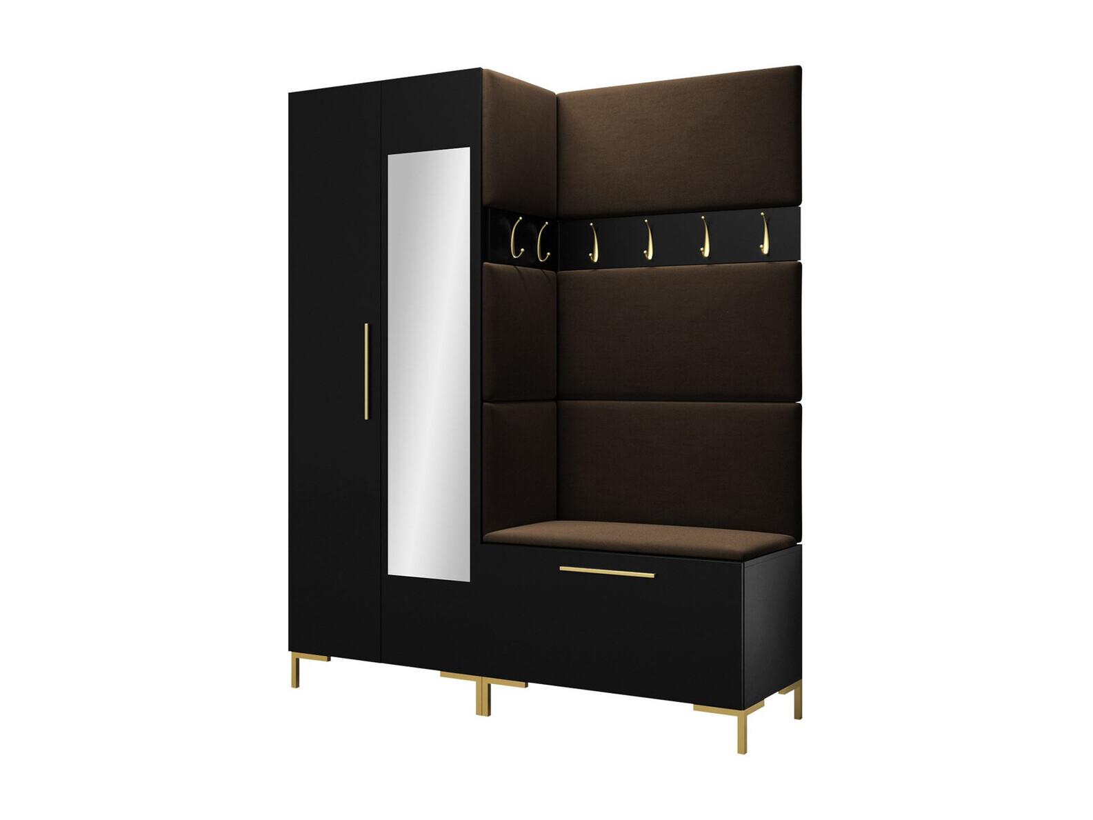 Conjunto pasillo Hartford F107, 196x158x46cm, Espejo, Marrón oscuro|Negro