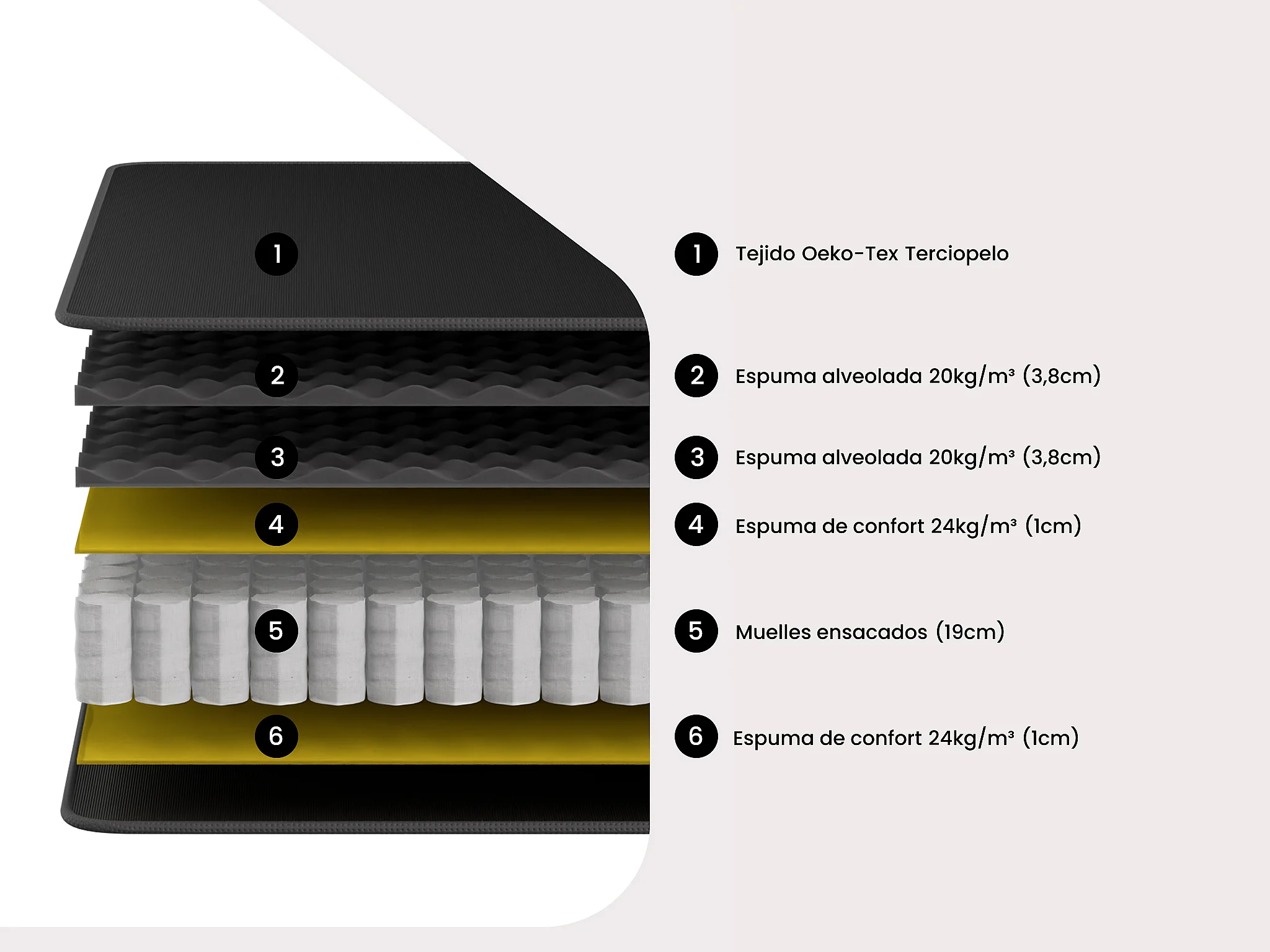 Conjunto somier arcón natural claro + colchón de muelles ensacados integrado con topper 160 x 200 cm - BLACK DREAM de YSMÉE