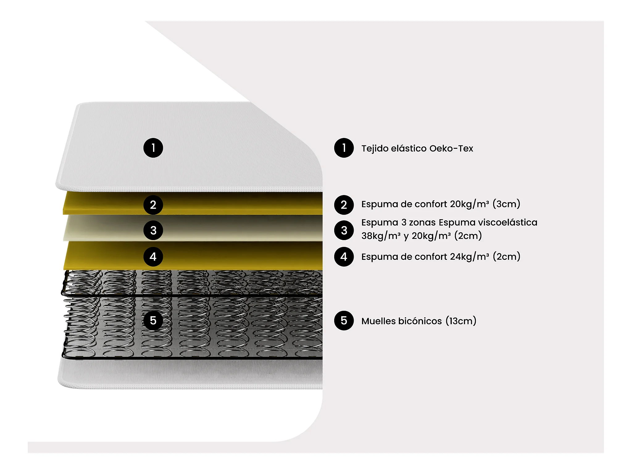 Conjunto somier canapé 140 x 190 cm natural claro + colchón de muelles de 3 zonas y memoria viscoelástica de 20 cm de espesor - WOLKENTANZ de YSMÉE