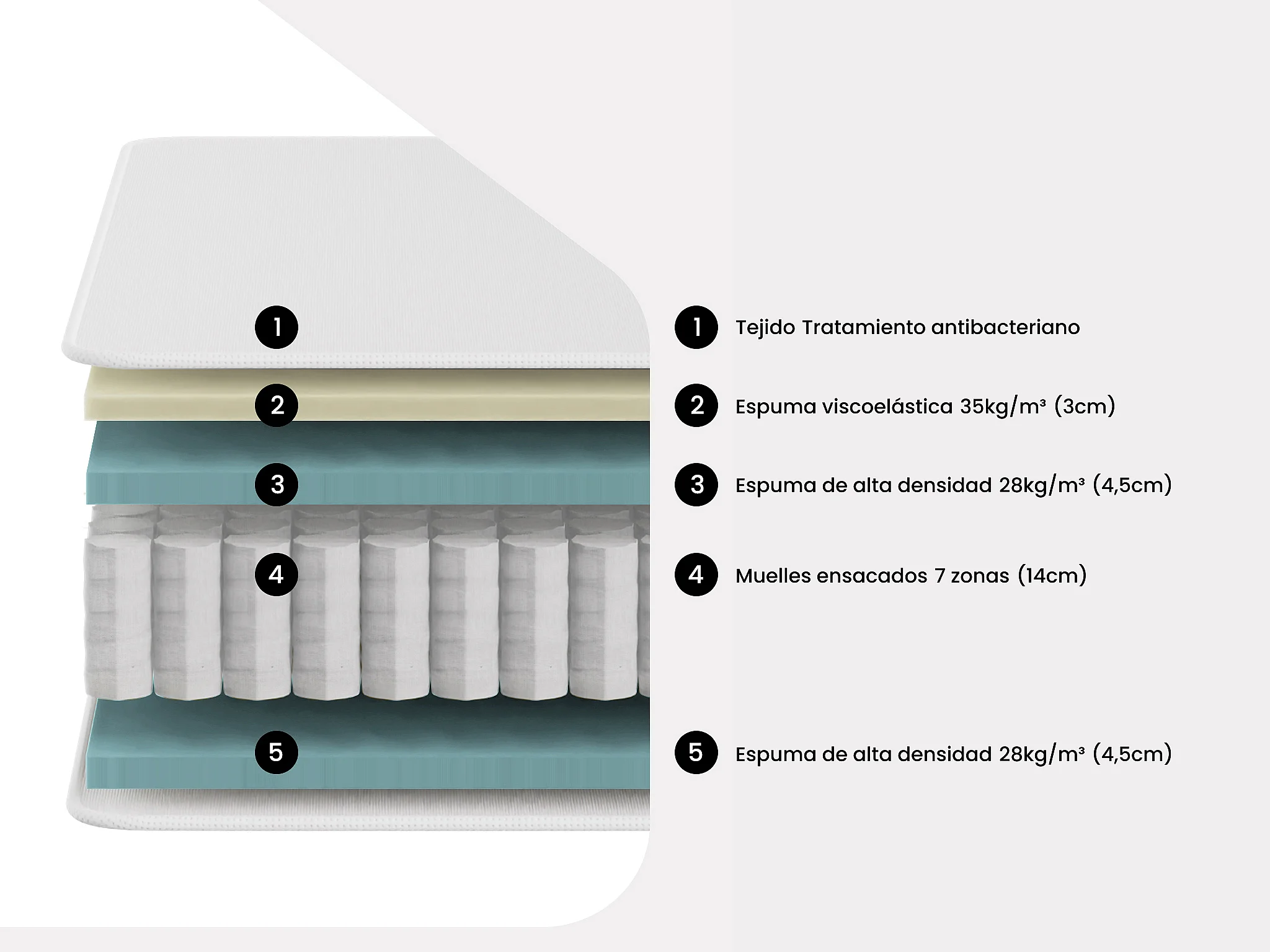 Conjunto somier canapé natural claro + colchón de muelles ensacados de 7 zonas y viscoelástico de 28 cm de espesor - MARANI de YSMÉE