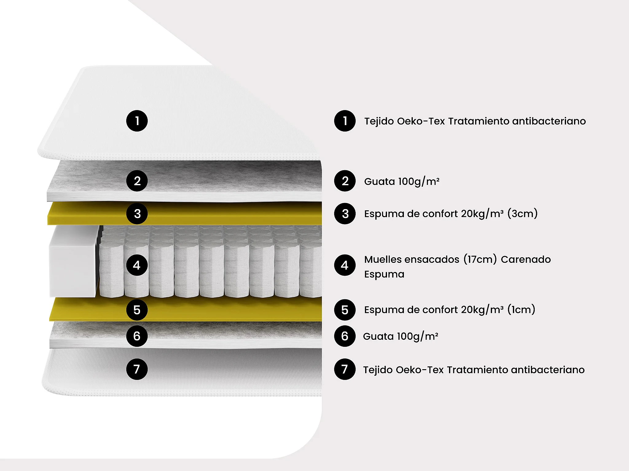 Conjunto Somier + colchón de muelles ensacados PRESTIGE de YSMEE 90 x 200 cm