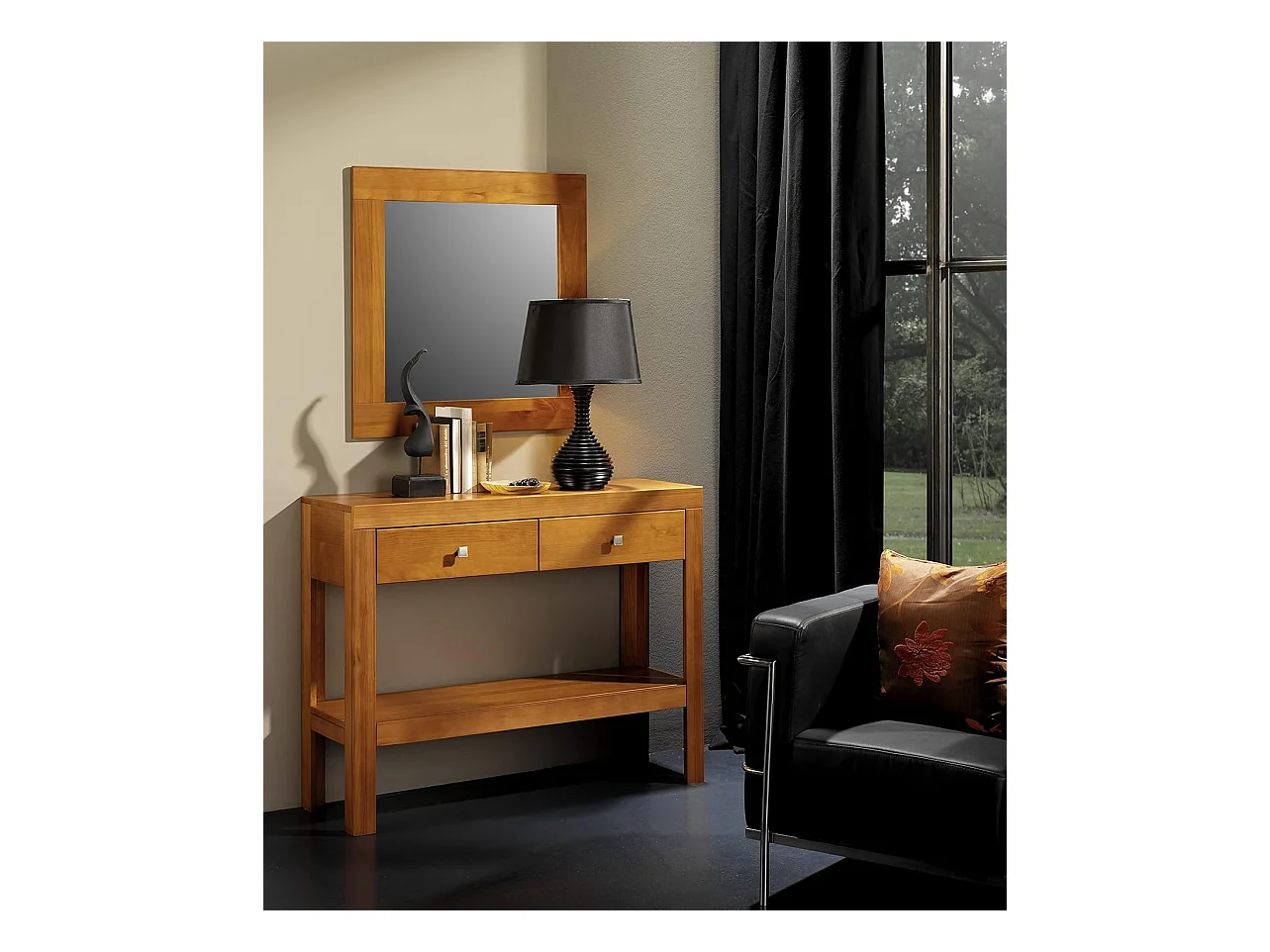 Consola 2 cajones, Moblit, color Cerezo, Relaizada en madera de Pino macizo .Medidas 85x105x35 cm (altoxanchoxfondo), Serie Kalpe cerezo.