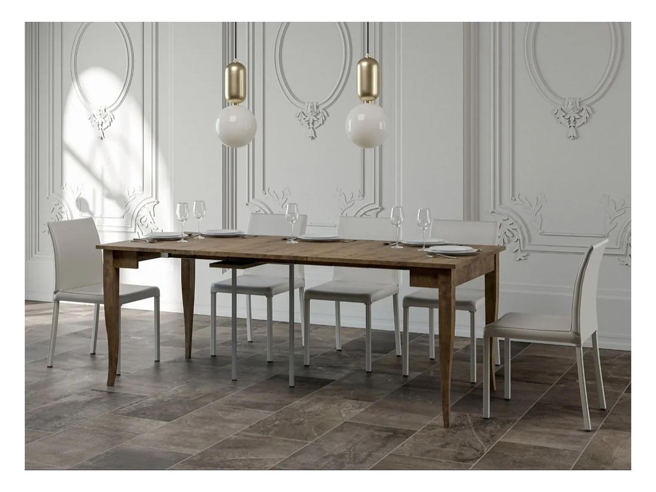 Consola vintage de 14 plazas de 40 a 306 cm Dina-Color Marrón-Soporte 4 pies-Alargaderas 5 extensiones