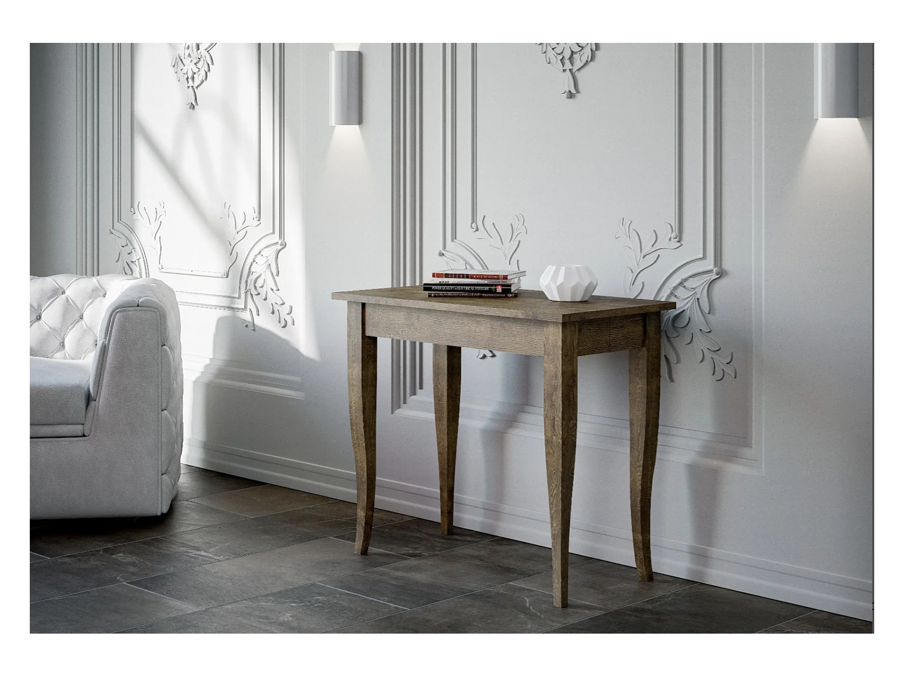 Consola clásica extensible de madera Kamila 90x48/204 o 90x48/308 cm-Color Marrón-Soporte 4 pies-Alargaderas 3 extensiones