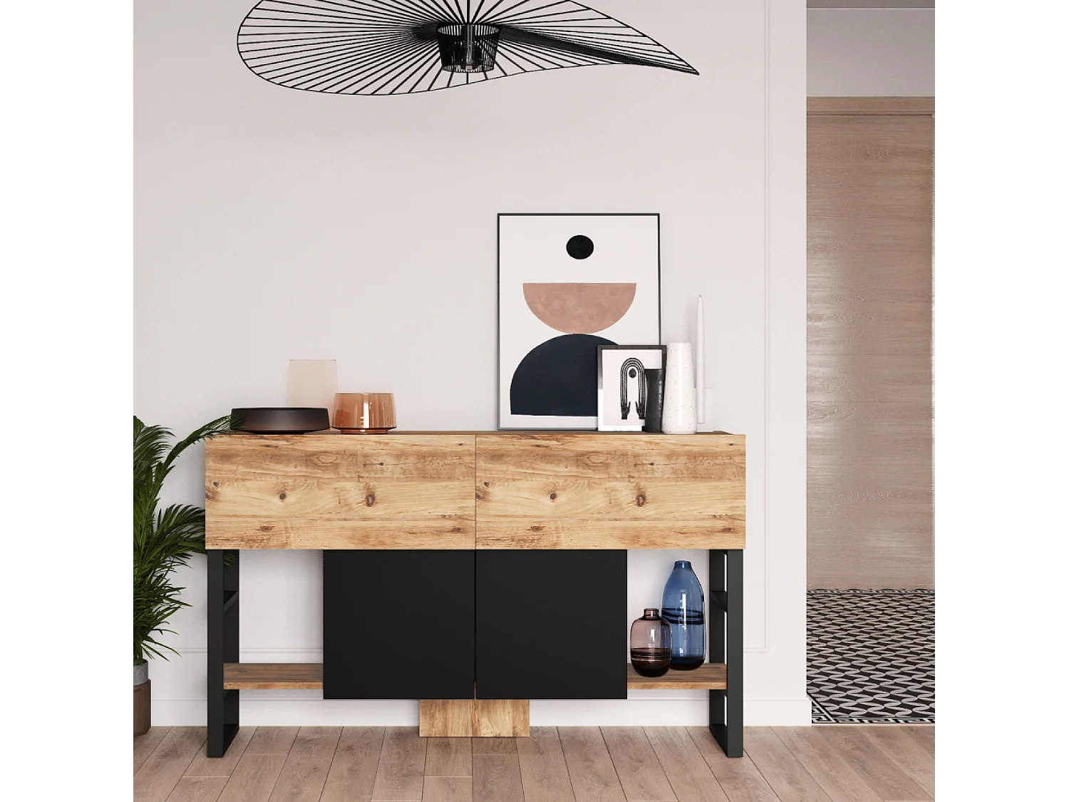 Consola con almacenaje de estilo industrial TARI