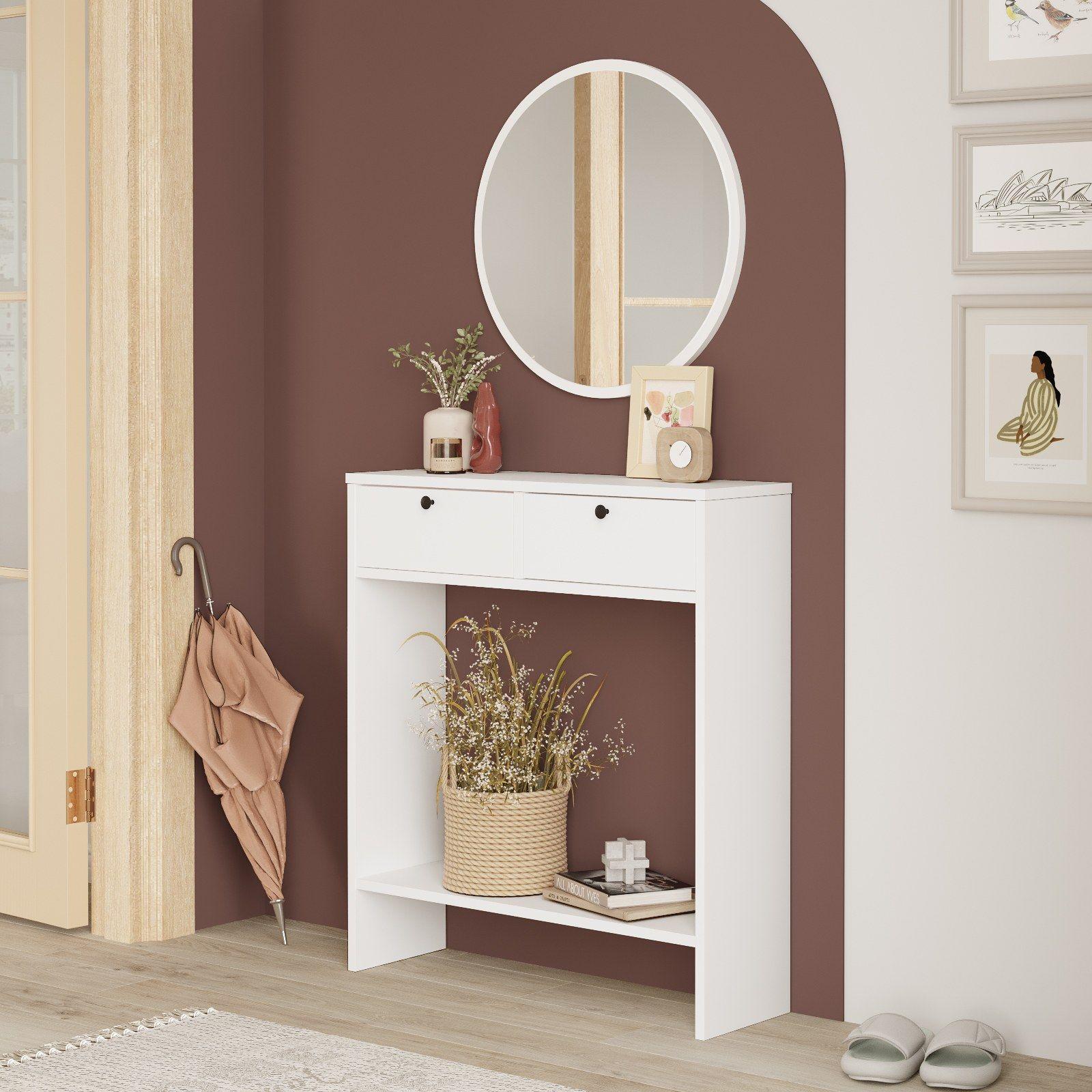 Mesa de café Kailua 102, Blanco, 40x65x105cm, Vidrio templado, Angular