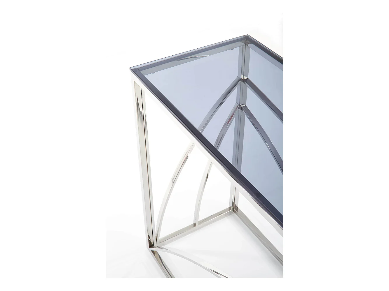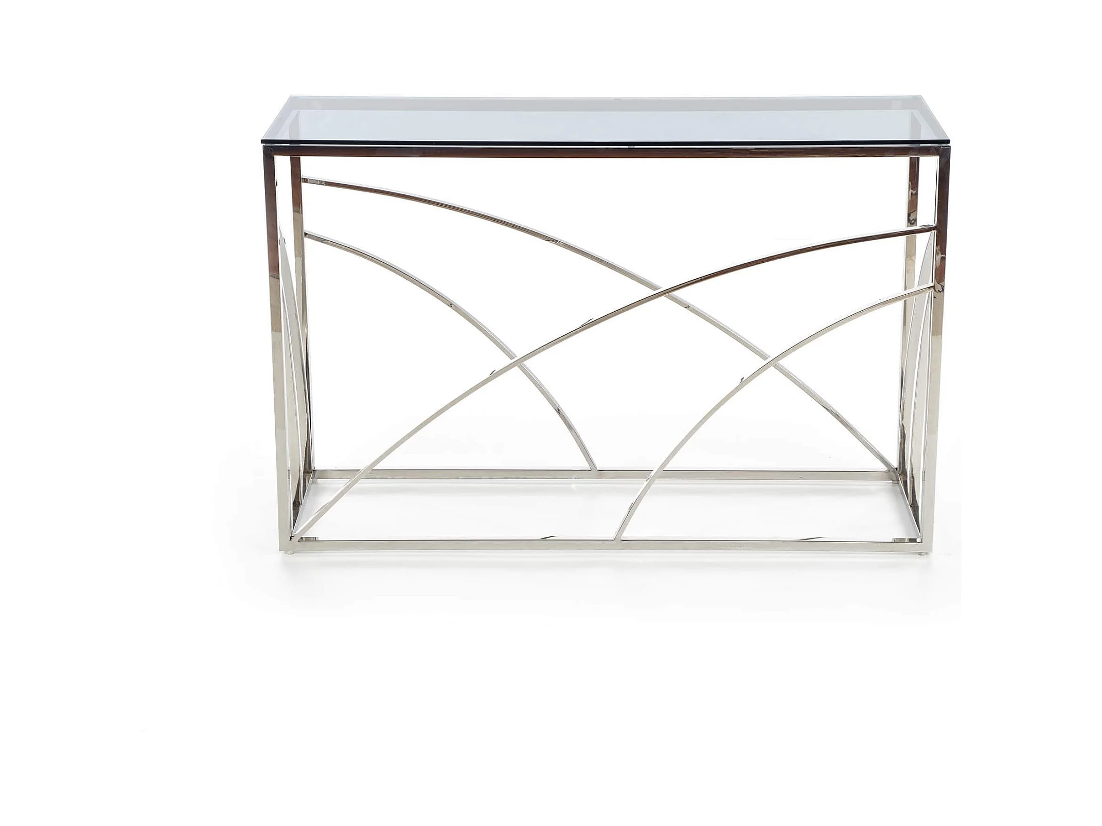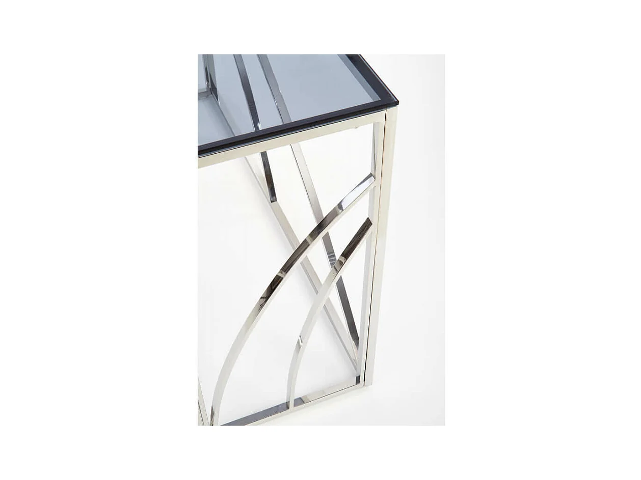 Consola de 120 x 40 cm con estructura de metal cromado y tapa de cristal ahumado SOCHIC